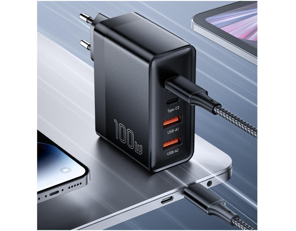 ESSAGER 100W 2 Type-C 2 Type-A — передовий зарядний пристрій, розроблений для забезпечення найвищої продуктивності та універсальності в області заряджання електронних пристроїв. З двома портами USB Type-C і двома портами USB Type-A, оснащеними технологією Gallium Nitride (GaN), цей пристрій є сучасним і компактним рішенням для ефективної зарядки ваших гаджетів. Технічні характеристики: