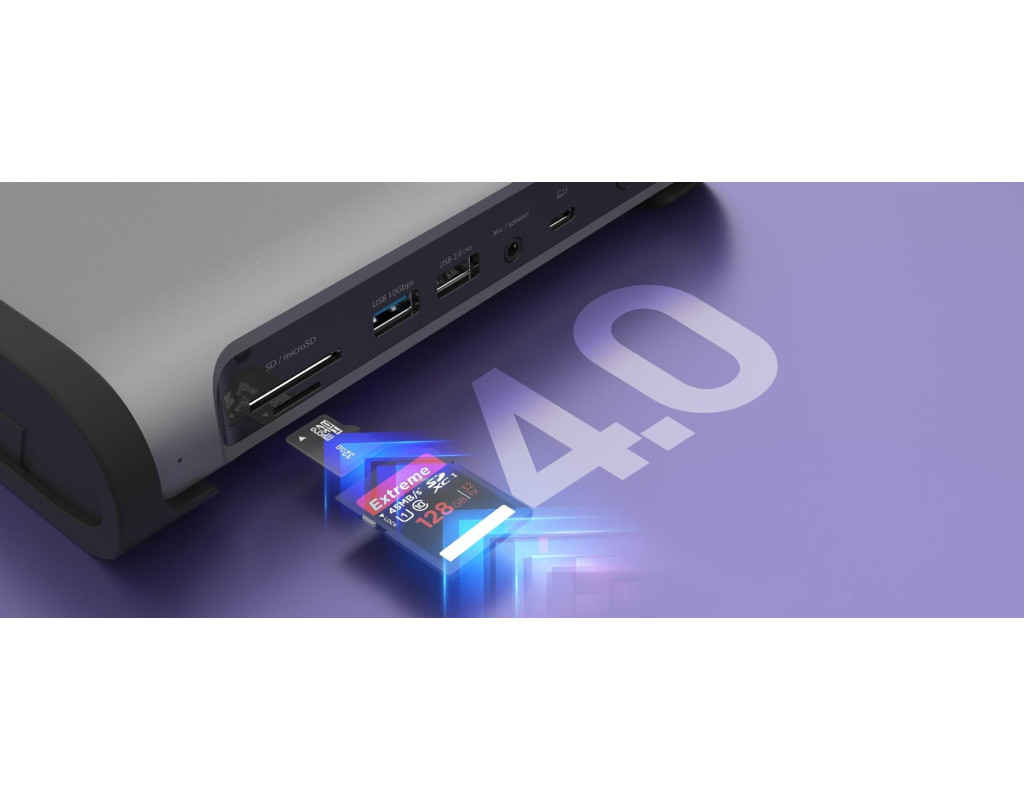 | Ця док-станція Thunderbolt 4 Quad Display перетворює ваш ноутбук Windows або Mac на повноцінну робочу станцію з підтримкою до чотирьох дисплеїв з роздільною здатністю 4K 60Hz, трьох дисплеїв з роздільною здатністю 4K 60Hz або двох дисплеїв з роздільною здатністю 5K 60Hz або 8K 60Hz на одному дисплеї.