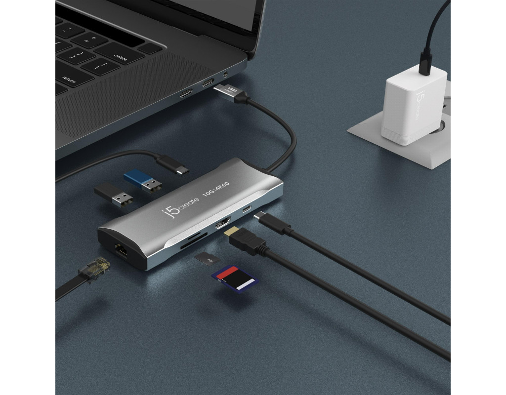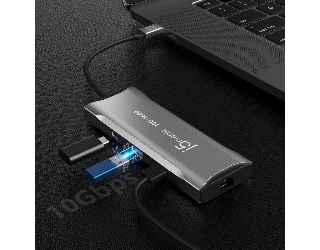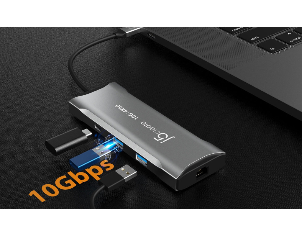 | Док-станція J5create USB-C 7-в-1 (JCD393-N) оснащена усіма необхідними портами та обладнана сучасним чіпом USB-C E-Mark для сумісності з хостами та пристроями USB4, Thunderbolt 3 і Thunderbolt 4.