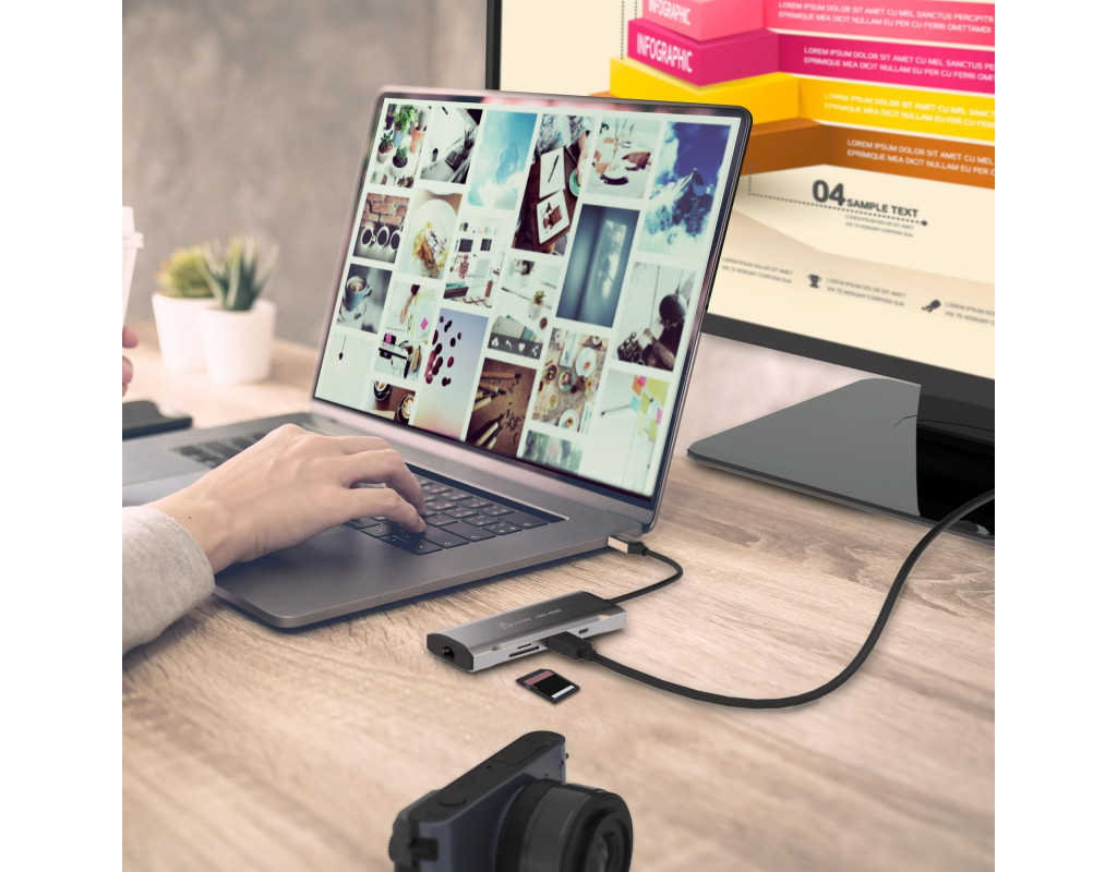 Ця док-станція USB-C із підтримкою DisplayPort 1.4 дозволяє легко підключити дисплей 4K 60 Гц. Вона має три порти USB SuperSpeed 10 Гбіт/с (1 USB-C і 2 USB Type-A) для підключення периферійних пристроїв або заряджання, кардрідер SD і microSD 4.0 для управління мультимедійними файлами та порт Gigabit Ethernet для доступу до дротової мережі. Адаптер також підтримує Power Delivery 3.0, що забезпечує пропускну здатність потужністю до 100 Вт для живлення підключених периферійних пристроїв і заряджання ноутбука за допомогою адаптера живлення USB-C. |