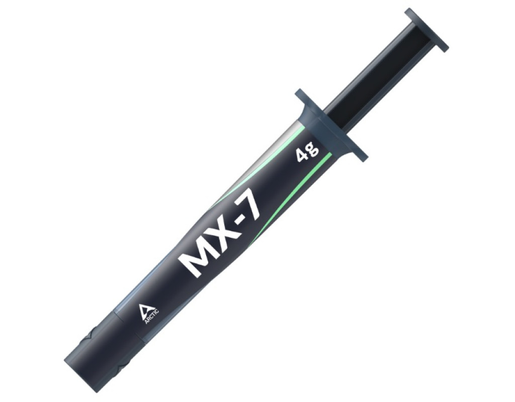 | Arctic MX-7 — це найновіша високоефективна термопаста від Arctic, що позиціонується як найкраще рішення в лінійці MX, що перевершує MX-6 і MX-4 покращеними характеристиками, нижчим тепловим опором і довговічністю, наноситься хрестиком завдяки високій в’язкості і низькій адгезії, призначена для CPU/GPU та має робочий діапазон температур від -50 до 250 °C. |