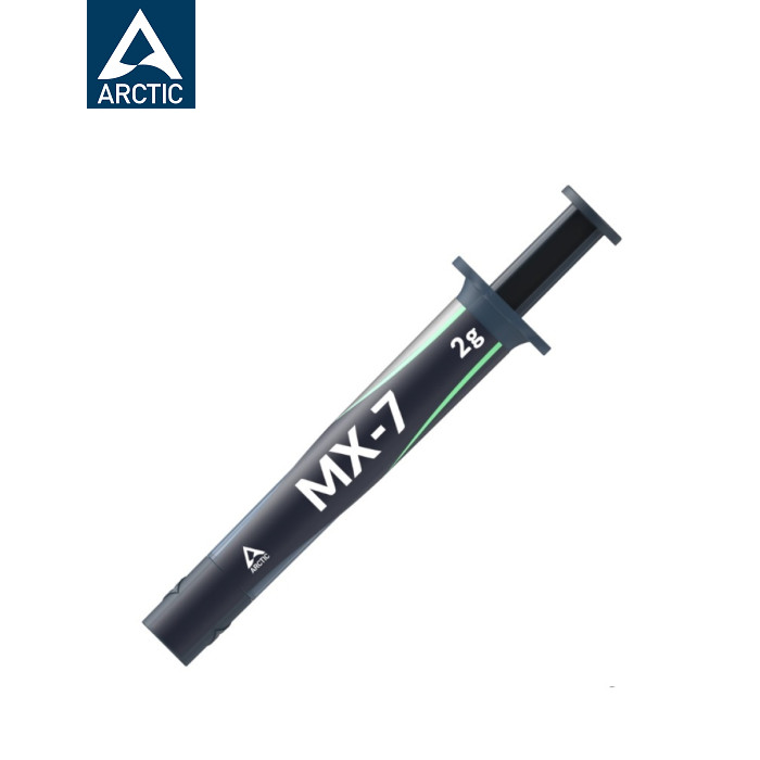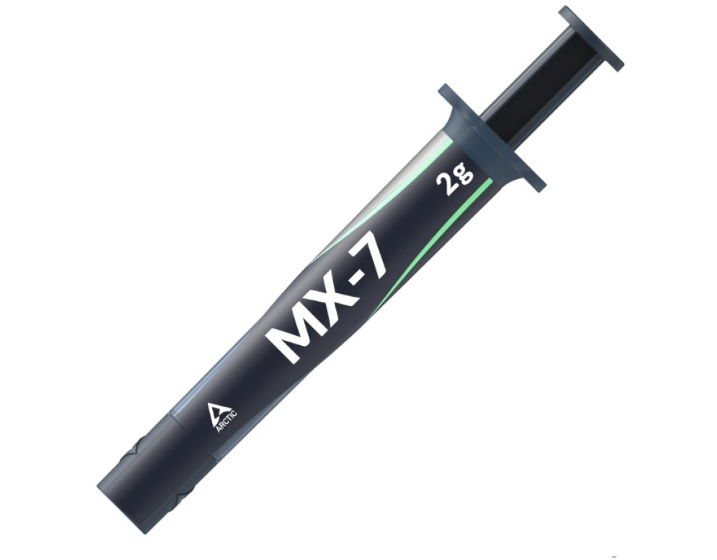 | Arctic MX-7 — це найновіша високоефективна термопаста від Arctic, що позиціонується як найкраще рішення в лінійці MX, що перевершує MX-6 і MX-4 покращеними характеристиками, нижчим тепловим опором і довговічністю, наноситься хрестиком завдяки високій в’язкості і низькій адгезії, призначена для CPU/GPU та має робочий діапазон температур від -50 до 250 °C. |