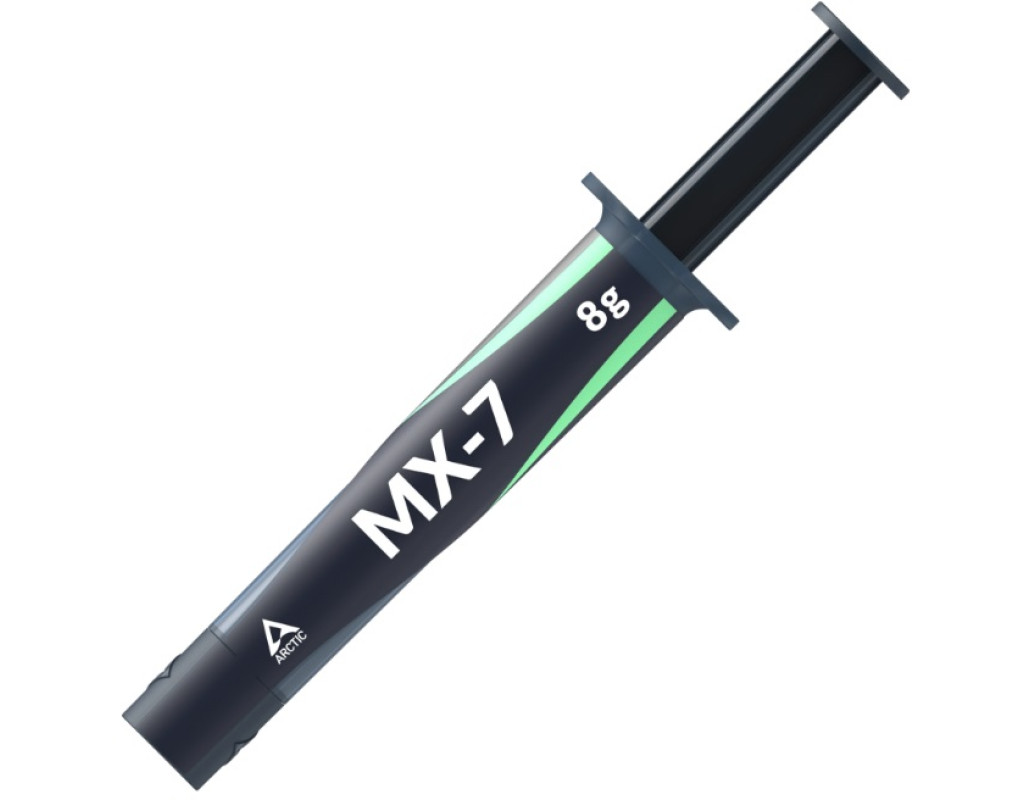 | Arctic MX-7 — це найновіша високоефективна термопаста від Arctic, що позиціонується як найкраще рішення в лінійці MX, що перевершує MX-6 і MX-4 покращеними характеристиками, нижчим тепловим опором і довговічністю, наноситься хрестиком завдяки високій в’язкості і низькій адгезії, призначена для CPU/GPU та має робочий діапазон температур від -50 до 250 °C. |