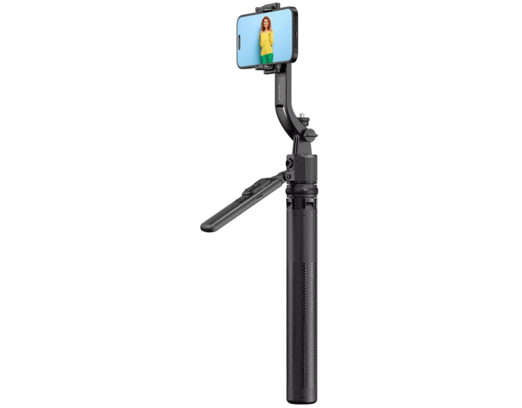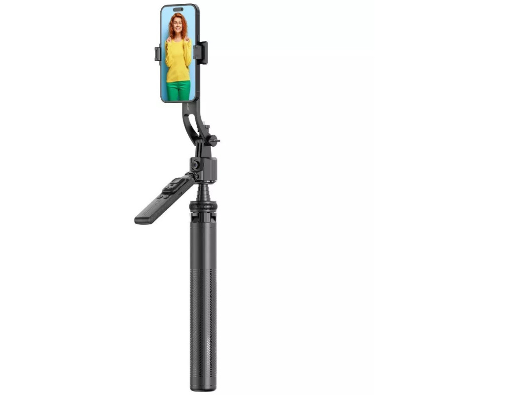 Зручність у використанні Легка телескопічна конструкція розкладається до 1.6 м і швидко складається до компактного розміру. Вбудований акумулятор на 850 мАг забезпечує понад годину автономної роботи, а зарядка через Type-C займає близько однієї години. Функціональність Смартсистема Face Tracking автоматично розпізнає обличчя та відстежує рух голови під час зйомки. Завдяки цьому камера завжди фокусується на користувачеві, дозволяючи записувати відео без ручного керування. |
