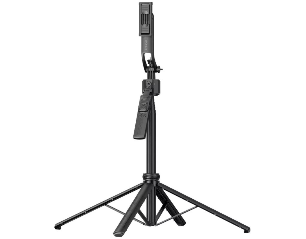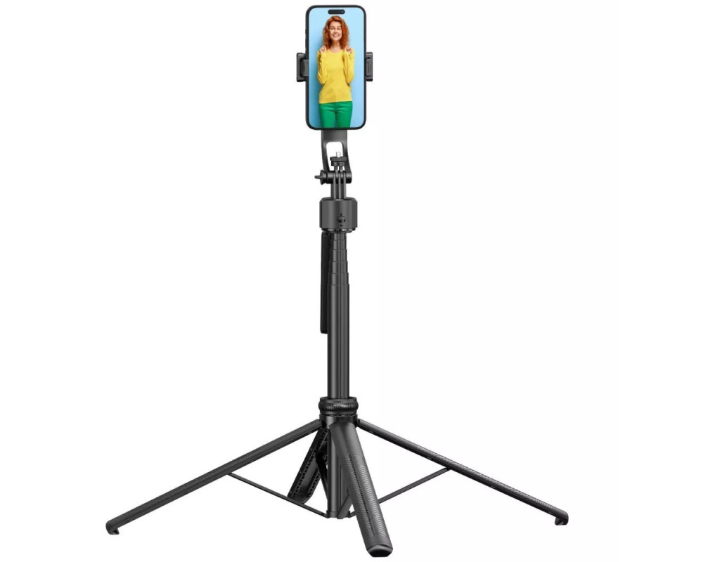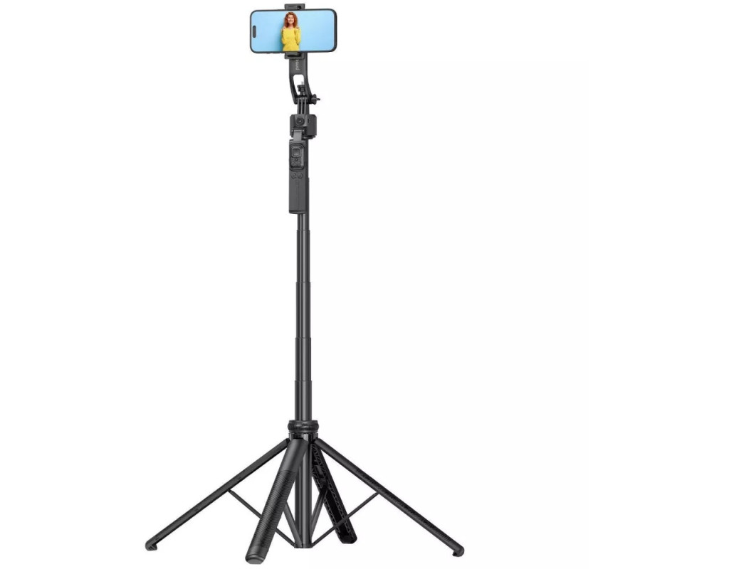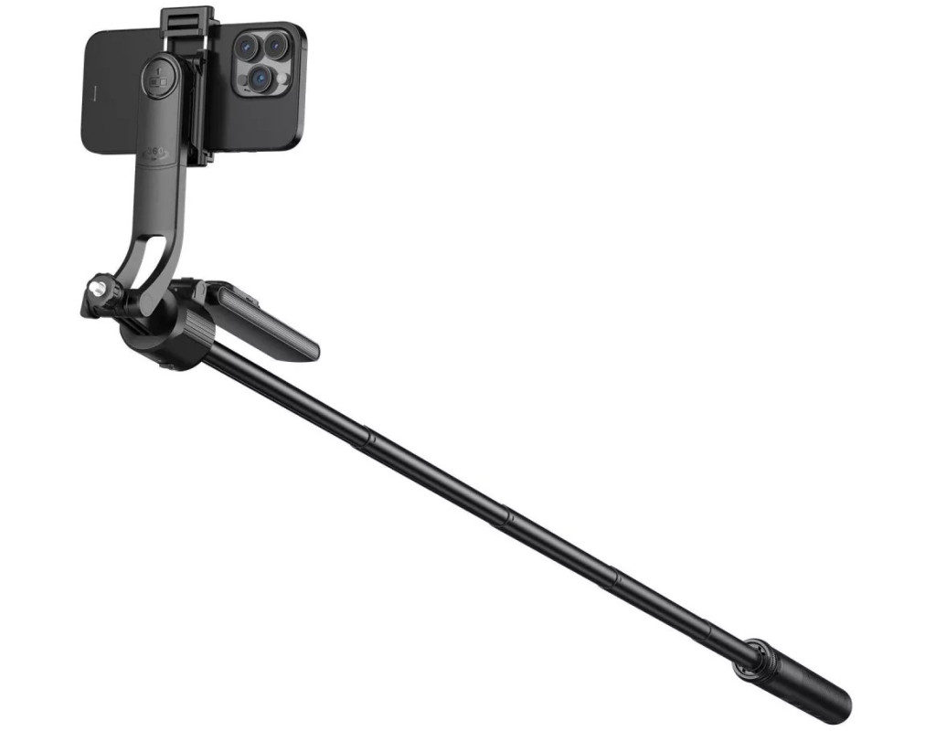 | Корпус із міцного ABS і алюмінієвого сплаву гарантує стабільність і довговічність навіть при повному розкладанні. Механічне кріплення надійно фіксує смартфон і запобігає його випадінню під час зйомки.
