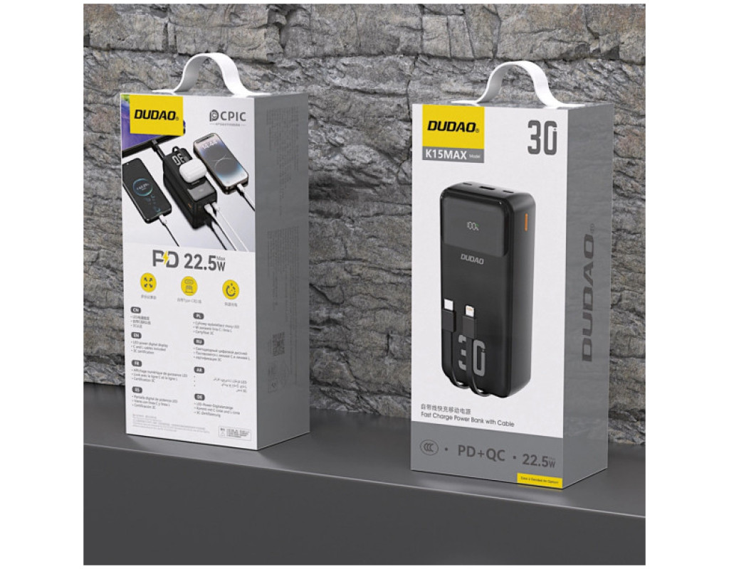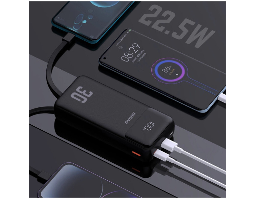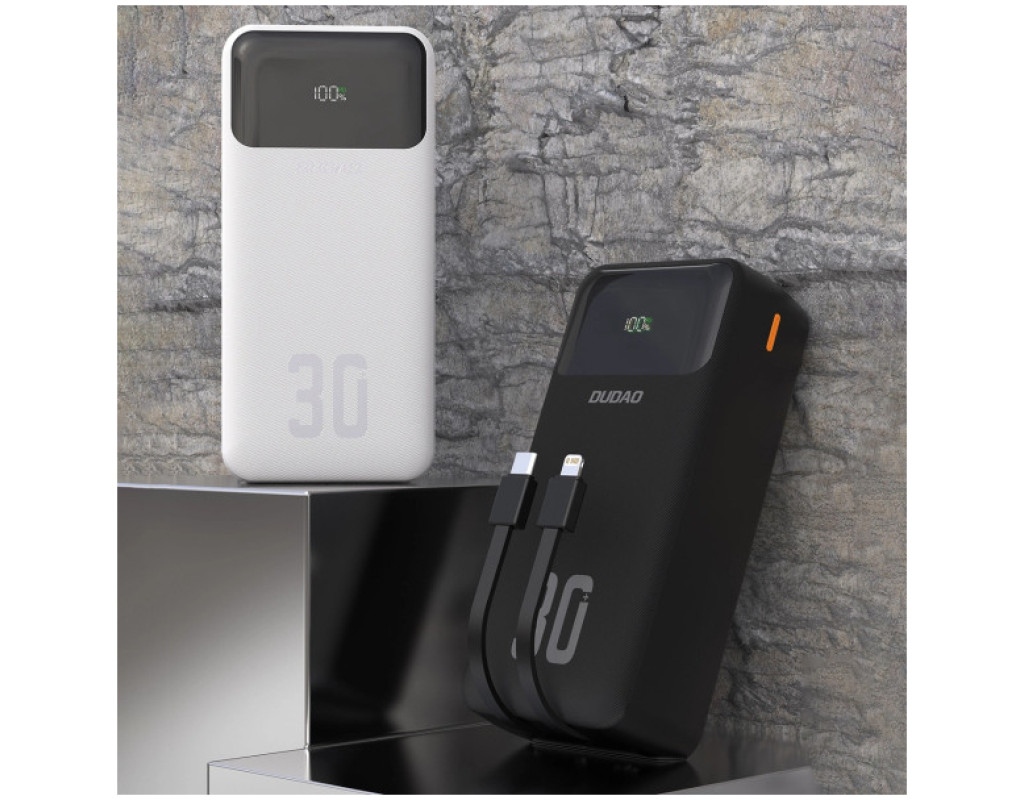 Батарея універсальна Dudao 30000mAh K15 MAX 22.5W, PD, QC, USB-A, Lightning, USB-C(In/Out), with USB-C/Lightning cables (6977196682478)