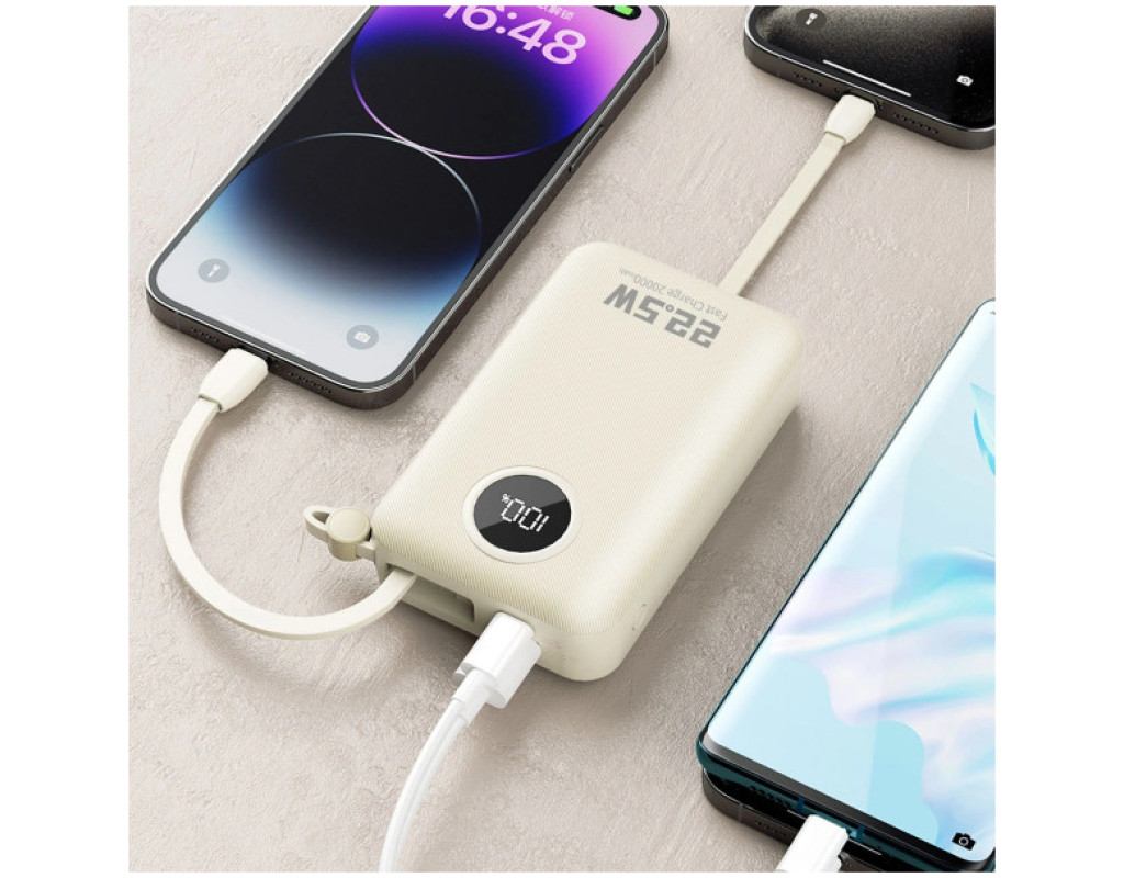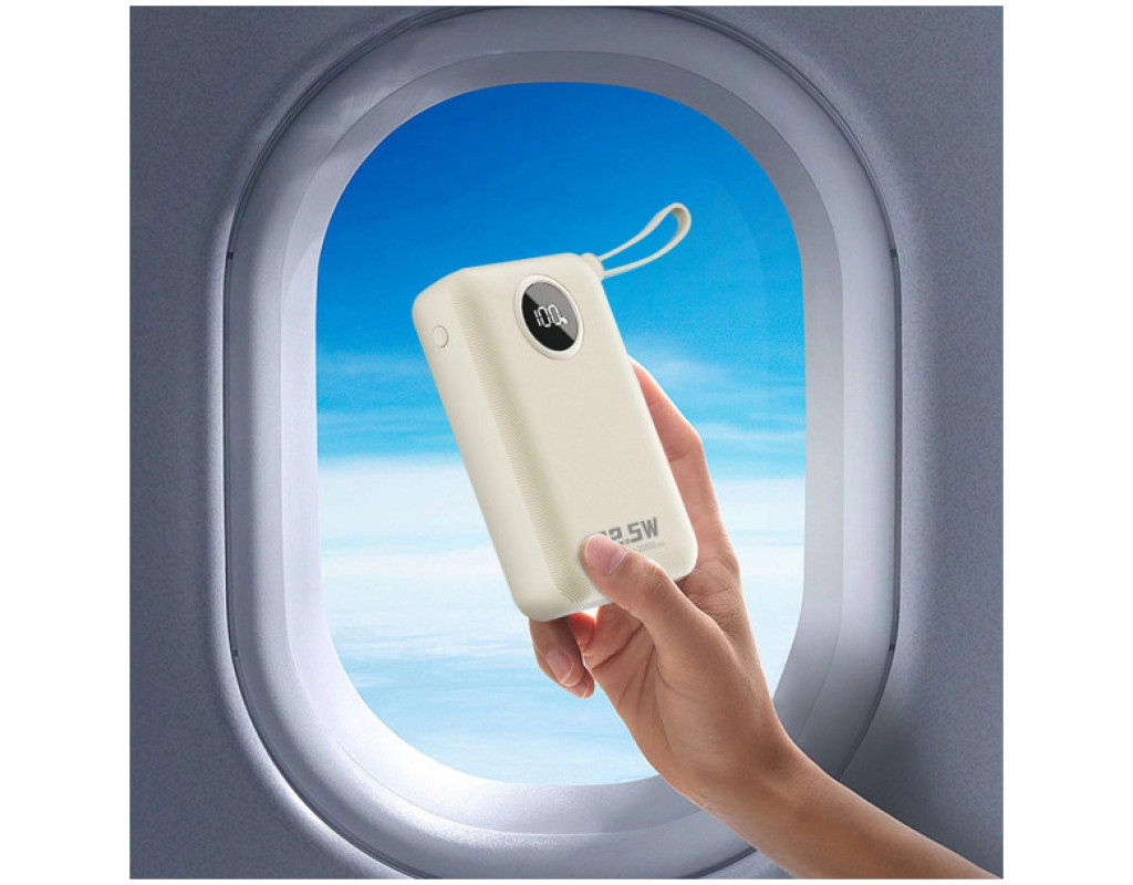 Батарея універсальна Dudao 20000mAh K14+ 22.5W, PD, QC, USB-A, USB-C(In/Out), with built-in USB-C/Lightning cables, White (6977196680023)