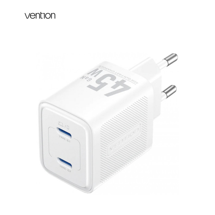 Зарядний пристрій VENTION 2xUSB-C PD45W GaN white (FEFW0-EU)