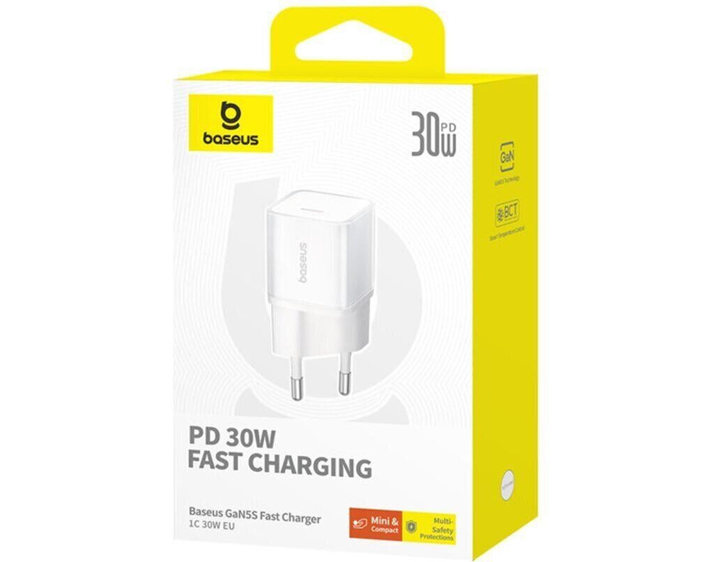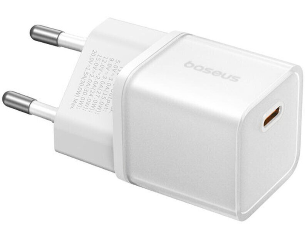 Зарядний пристрій Baseus 1xUSB-C 30W GaN5S white (P10162504213-00)