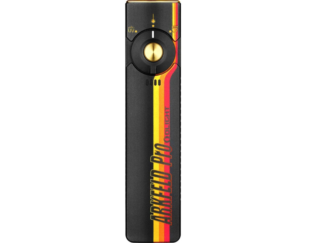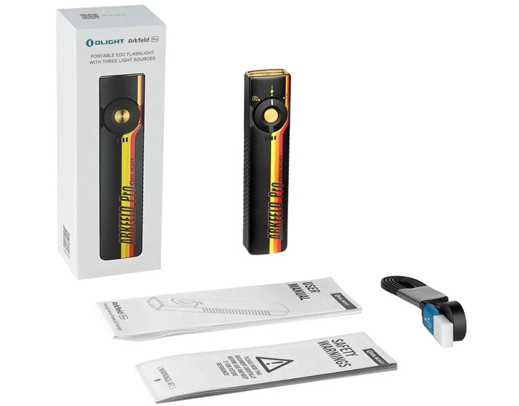 | Arkfeld Pro - це покращена версія моделі Arkfeld - EDC ліхтаря від бренду Olight. Завдяки потужному світлодіоду High-Performance LED і оптиці TIR, забезпечується світловий потік до 1300 люменів на відстань до 102 метрів. Модель додатково оснащена режимом світла UV потужністю 900 mW і лазерним цілевказником зеленого кольору потужністю 0,39 mW класу 1R. Ультрафіолетове світло дозволяє перевіряти справжність банкнот і документів з водяними знаками. Також допомагає виявити флуоресцентні елементи, які не видно неозброєним оком.Arkfeld Pro живиться від вбудованого літій-полімерного акумулятора місткістю 1500 mAh, який можна заряджати за допомогою магнітного зарядного пристрою Olight USB MCC 1A (входить до комплекту). Про низький рівень заряду сповістять спеціальні світлодіоди під перемикачем режимів роботи. Корпус Arkfeld Pro виконаний з анодованого алюмінію типу III. Ліхтарик відповідає стандарту водонепроникності IPX7 за стандартом ANSI.Arkfeld Pro Class поставляється у двох варіаціях:Class 1: Оснащений зеленим лазером класу 1R з потужністю до 0,39 мВт. Такий лазер вважається безпечним для очей і не вимагає спеціальних заходів безпеки при використанні. Рекомендується для щоденного використання.Class 3R: Має зелений лазер класу 3R з потужністю до 5 мВт. Цей лазер забезпечує яскравіше та видиміше світло, але потребує обережності, оскільки пряме потрапляння променя в очі може бути небезпечним. Підходить для професійного застосування, де потрібна підвищена видимість лазера, наприклад, у будівництві чи тактичних операціях.Режими роботи:- 1300 - 420 люменів / 4 хв + 126 хв,- 420 - 100 люменів / 135 хв + 12 хв,- 100 люменів / 9 год 45 хв,- 15 люменів / 55 год,- 1 люмен / 11 днів,- режим UV / 351 хв,- лазер / 61 год,- Strob. |