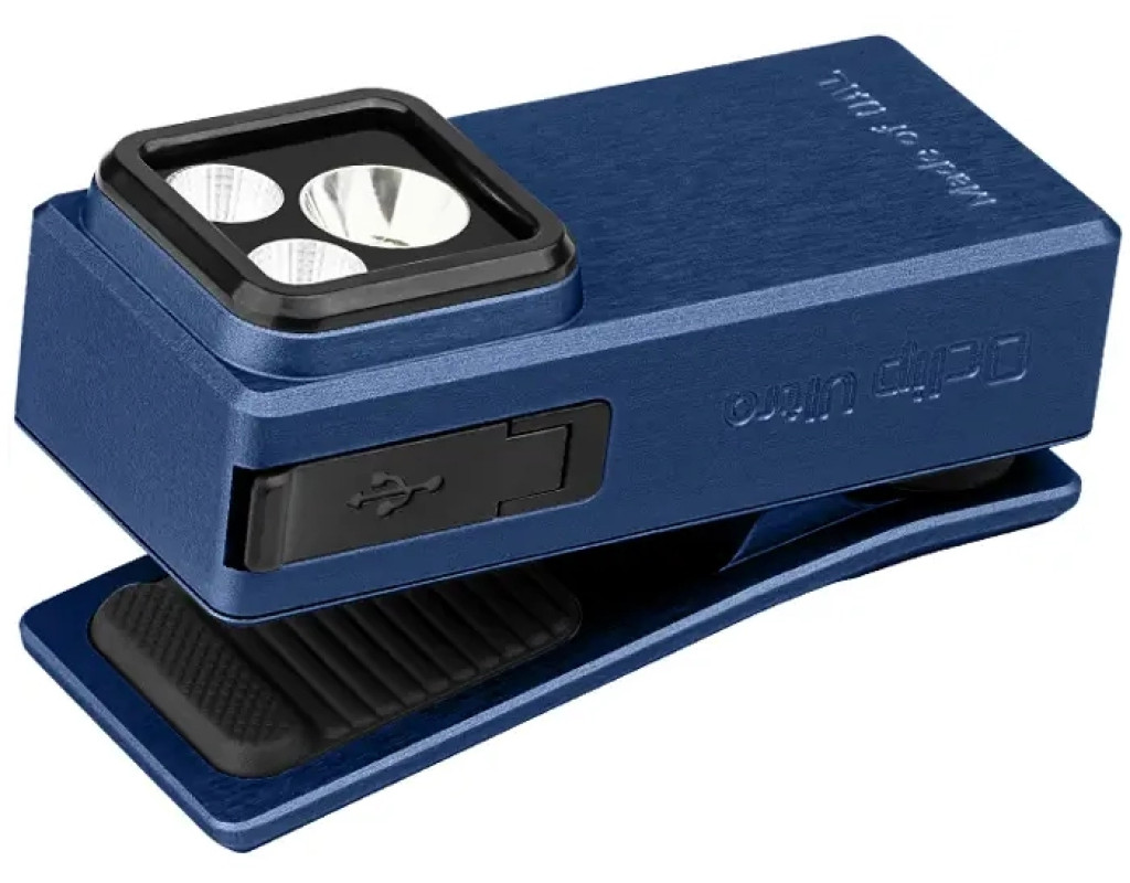 | Olight Oclip Ultra — компактний EDC-ліхтар для щоденних робіт, який поєднує три джерела світла в одному корпусі: широкий Floodlight для ближньої роботи, дальній Spotlight для підсвічування на дистанції та УФ 365 нм для перевірок (купюри, мінерали, чистота поверхонь). Максимальна яскравість: до 530 lm, дальність променя спрямованого світла — до 130 м, УФ-канал має потужність 800 mW.Корпус виготовлений з O-aluminum (матеріал підвищеної твердості та зносостійкості), тож Oclip Ultra добре витримує щоденне носіння й активне використання. Формат кліпси дозволяє швидко закріпити ліхтар на кишені, ремені, лямці рюкзака або екіпіруванні, звільняючи руки. Заряджання — через USB-C.Режими освітлення та час роботи (Floodlight / Spotlight):Turbo: 530→300→100 lm / 450→270→90 lm — 1+50+30 хвHigh: 300→180→100 lm / 270→160→90 lm — 10+80+20 хвMedium: 100 lm / 90 lm — 3,5 годLow: 10 lm / 9 lm — 27 годMoon: 1 lm / 1 lm — 144 годOclip Ultra — вдалий вибір, якщо потрібен один універсальний ліхтар “на все”: від підсвічування робочої зони й побутових задач до технічних перевірок з УФ-світлом у компактному EDC-форматі. |