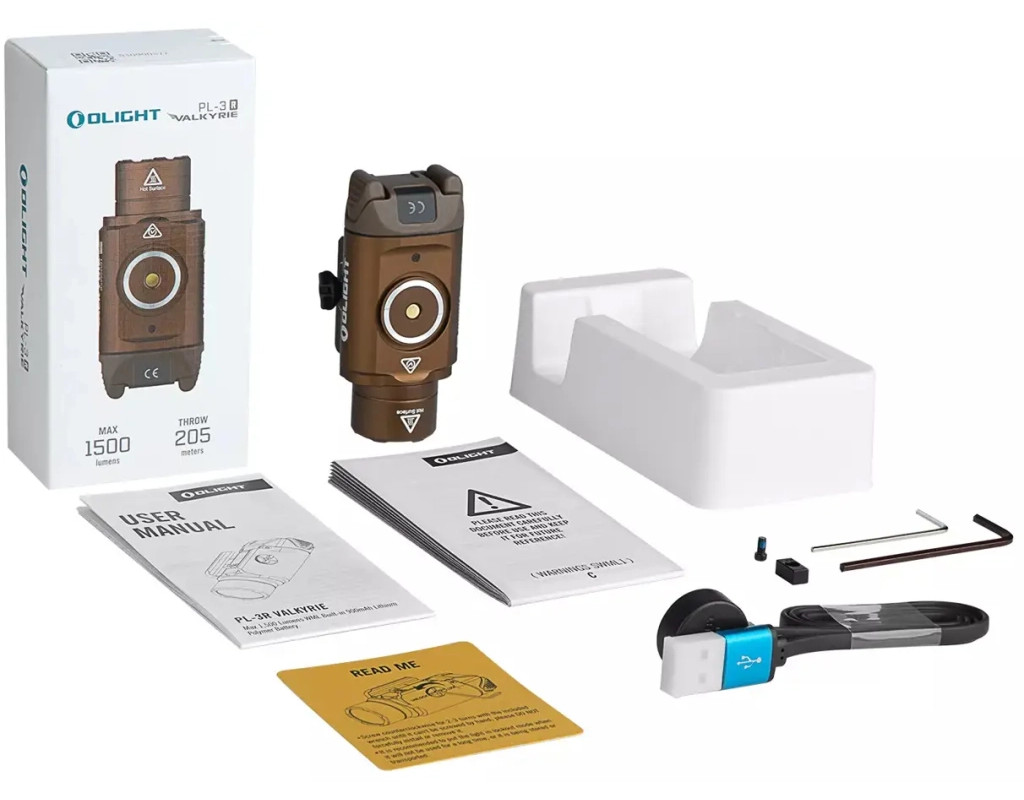 | Olight PL-3R Valkyrie - це оновлена версія популярної моделі PL-3 Valkyrie, яка має більшу максимальну потужність 1500 люмен від високоефективного білого світлодіода і тепер може перезаряджатися. Він призначений для пістолетів з планками типу «пікантіні» або «глок» і поставляється з двома адаптерами для кріплення (1913 і GL), що робить його сумісним з широким спектром пістолетів. Також є регульований розсувний блок з трьома положеннями для гнучкого позиціонування на різних типах планок.Щоб уникнути випадкової активації, PL-3R має режим блокування. Ліхтар живиться за допомогою вбудованого літій-полімерного акумулятора ємністю 900 мАг. Щоб зарядити ліхтар, просто підключіть магнітний зарядний пристрій, що входить до комплекту. Виконана модель із міцного анодованого авіаційного алюмінію марки T6061 (Type III), а водонепроникність стандарту IPx6 захистить прилад від дощу та вологи.Режими роботи:- Високий 1 Люмени: 1500 / 600 / 300- Високий 1 Час роботи (хвилини): 2 / 36 / 8.5- Високий 2 Люмени: 1000 / 600 / 300- Високий 2 Час роботи (хвилини): 12 / 23 / 8.5- Низький: 300 люмен; 100 хвилин- Строб: 1500 / 1000 люмен |
