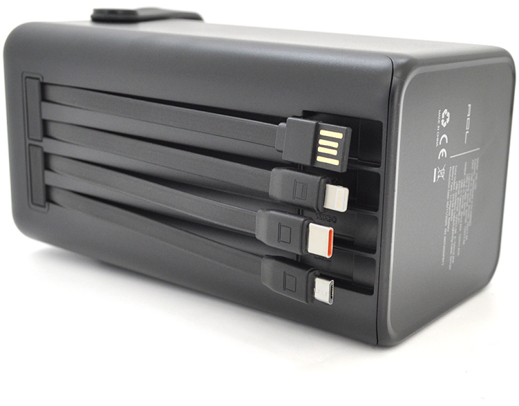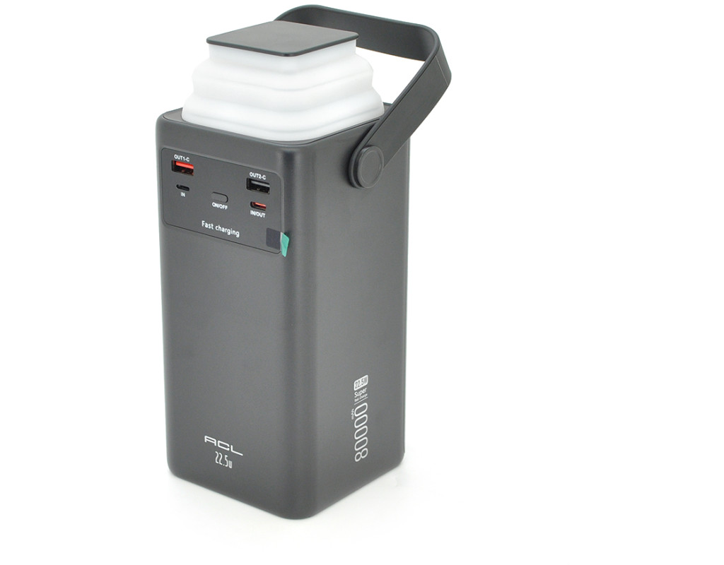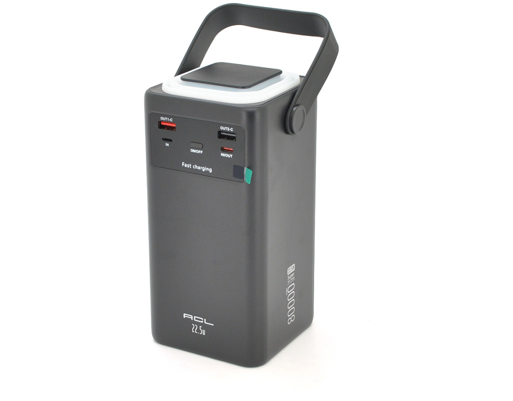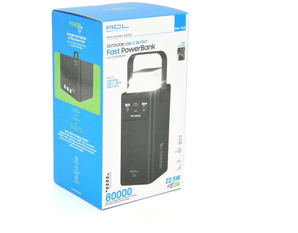 Powerbank ACL PW-152 80000mAh, 22.5W, 2xUSB, 4 кабелі (USB / Micro / Type-C / Lighting), Ліхтар, 1.4кг, Black, Box