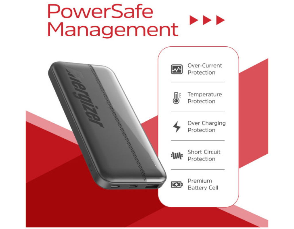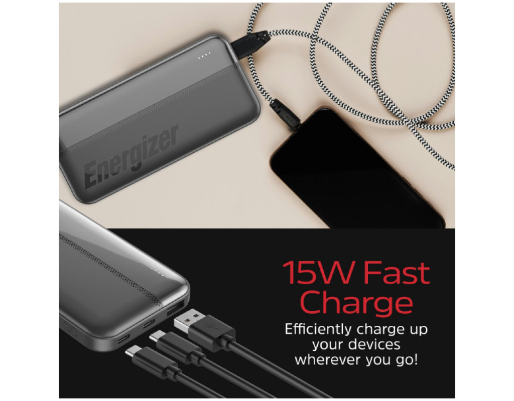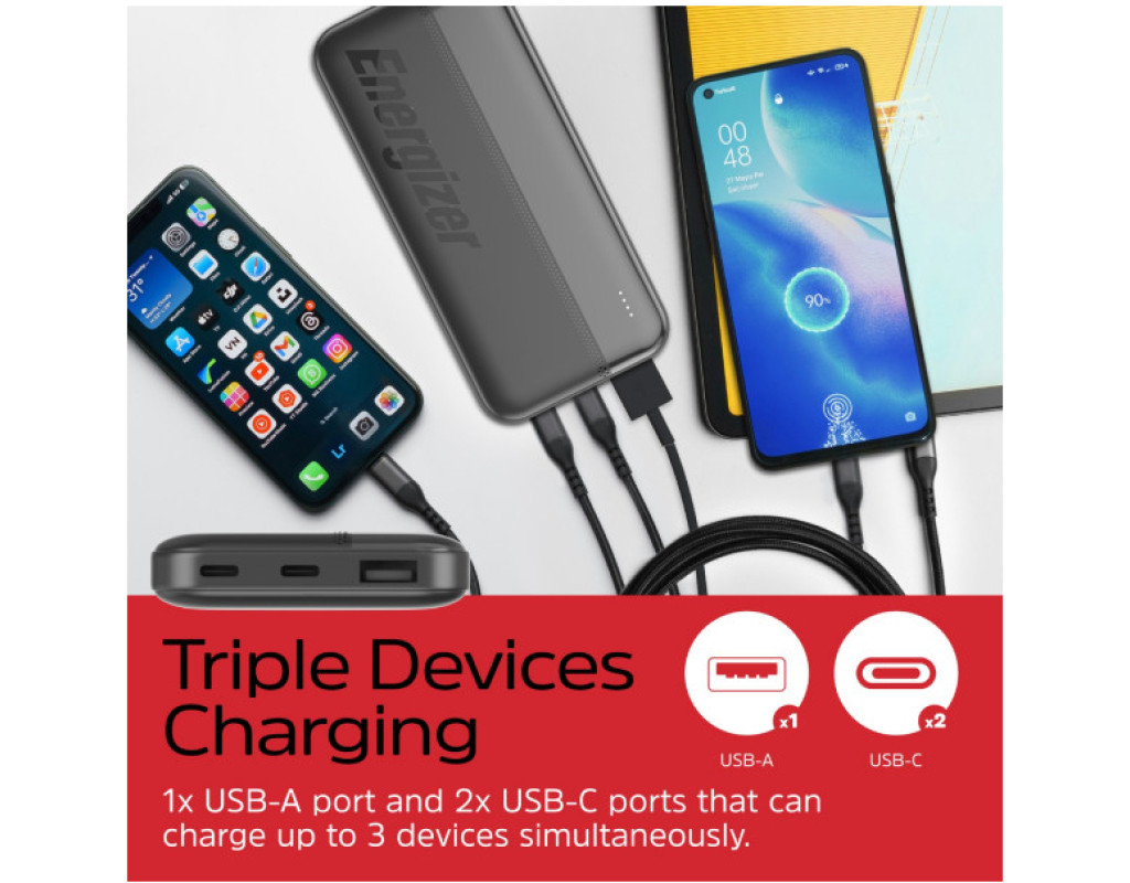 Батарея універсальна Energizer 10000mAh 15W, USB-А, 2*USB-C, Black (UE10050CC)