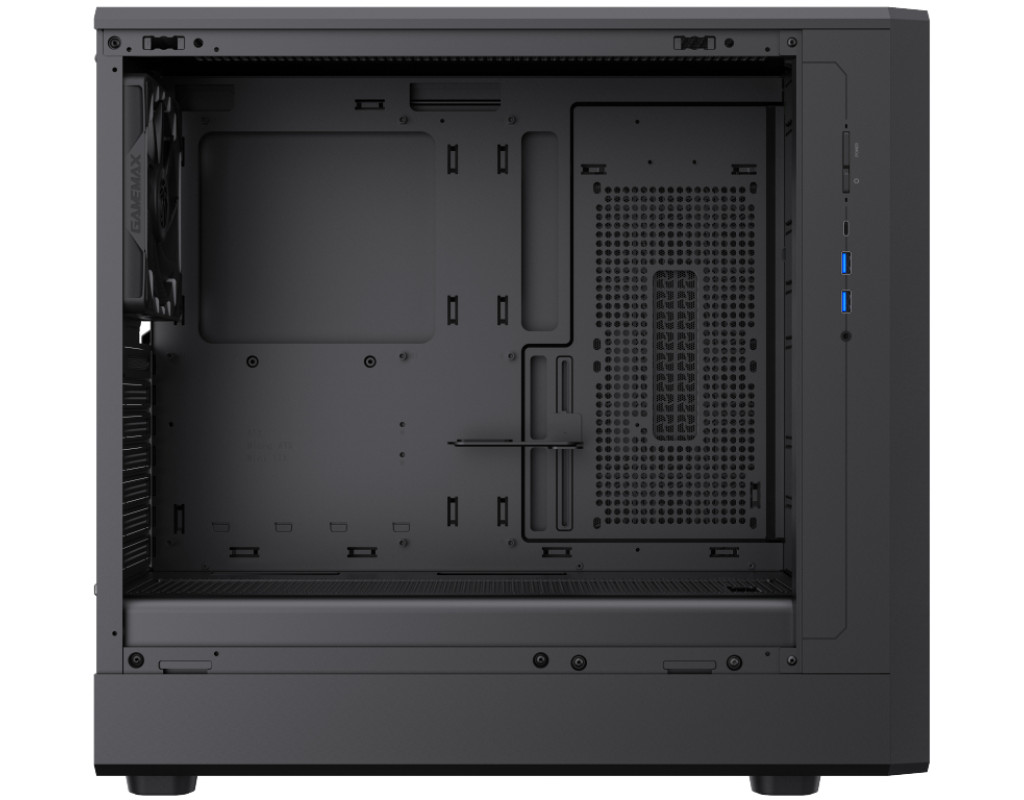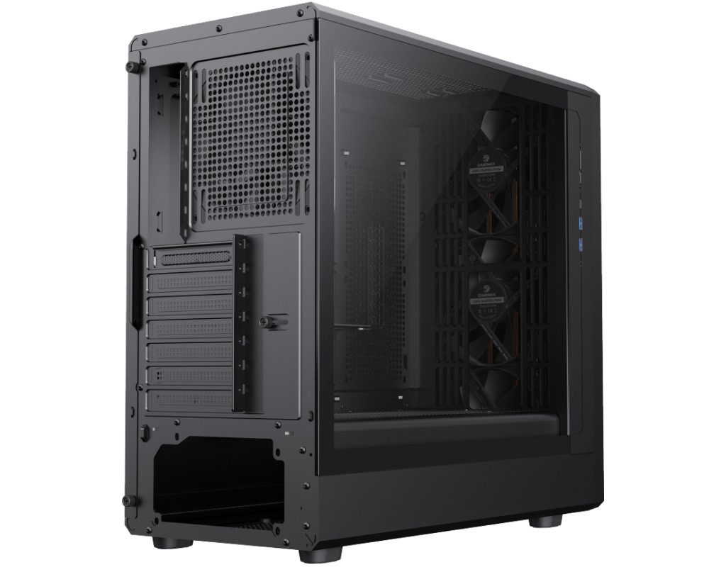 | GAMEMAX CLAW 460 WB — стиль, що керує повітряним потоком GAMEMAX CLAW 460 WB — це потужний ATX-корпус для геймерських і високопродуктивних систем, у якому агресивний дизайн поєднується з продуманою вентиляцією. Передня панель у формі лев’ячої лапи та фірмова вентиляційна сітка створюють впізнавану естетику GAMEMAX і водночас забезпечують ефективний повітряний потік. Виразний дизайн із функціональним характером Фронтальна панель із «кігтями» та ексклюзивні вентиляційні отвори на боковій частині не лише підкреслюють ігровий стиль, а й оптимізують циркуляцію повітря. Сталева сітка спереду та вертикальна схема продування сприяють кращому охолодженню компонентів навіть під час інтенсивних навантажень. Висока сумісність із сучасними компонентами Корпус підтримує: