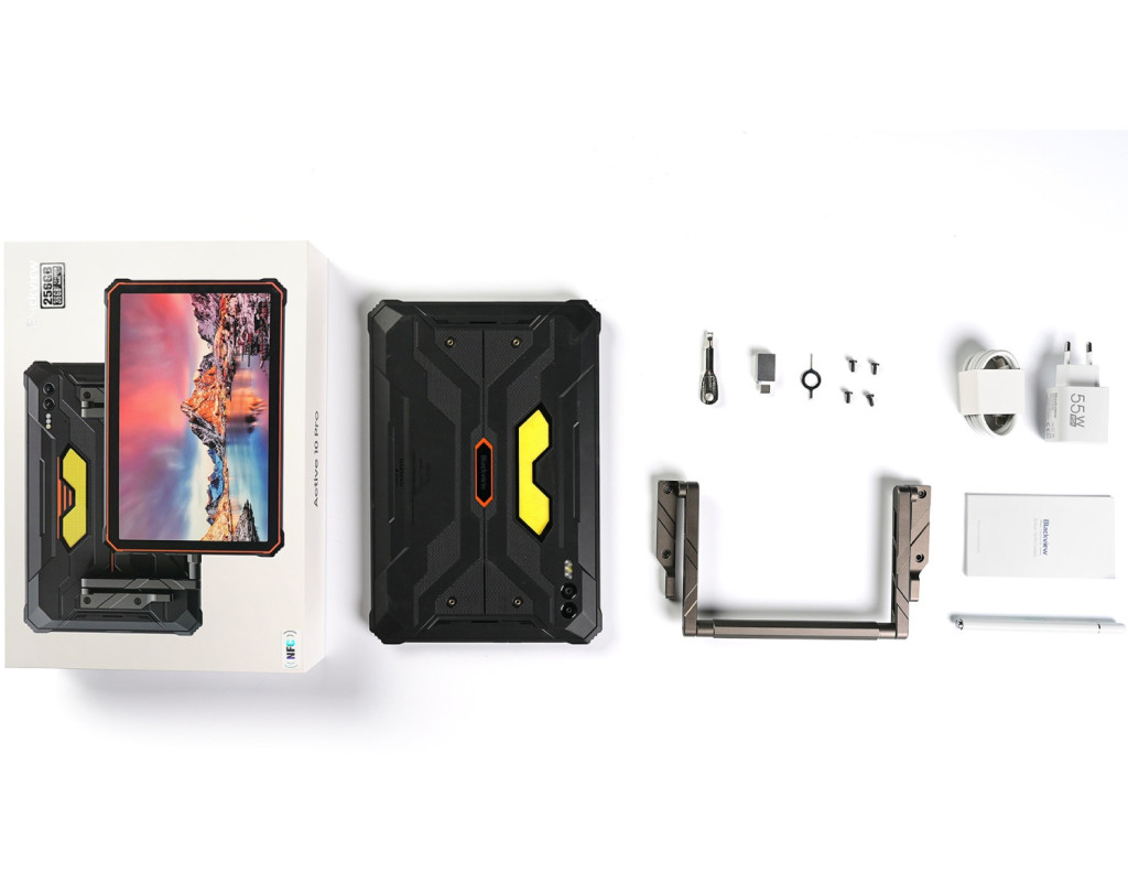 Планшет, Алюмінієва ручка, Викрутка, Болти, Зарядний пристрій, Документація, Гарантійний талон, Стилус |