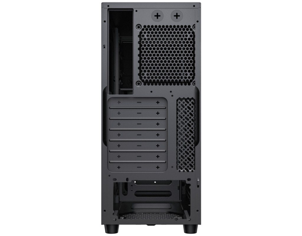 Сім слотів розширення дозволяють встановлювати кілька плат розширення, а міцна сталева конструкція зі сталі SPCC (0,5 мм) гарантує довговічність і стабільність. Гнучкі можливості для накопичувачів Корпус пропонує широкий вибір відсіків для зберігання даних: