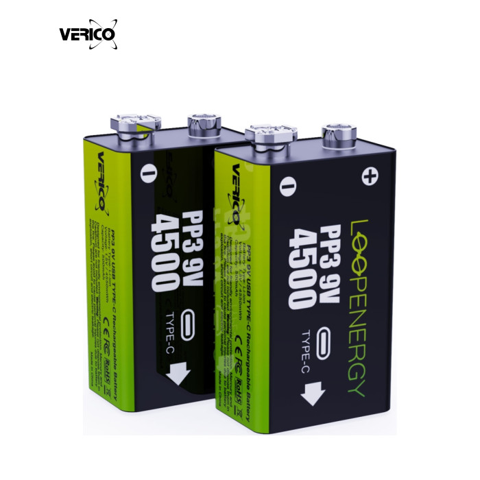 Високопродуктивна акумуляторна батарея Verico Loop-Energy із зарядним портом USB Type-C. Літій-іонна акумуляторна батарея високої місткості, створена для більшої потужності та довшого часу роботи. Вбудований зарядний порт USB Туре-С для швидкої зарядки протягом 1-2 годин. Акумуляторні батареї Verico Loop-Energy можна перезаряджати понад 1200 разів, заощаджуючи тисячі лужних батарейок і суттєво зменшуючи кількість відходів на звалищі. Внаслідок того, що Loop Energy виготовлені з акумуляторів типу Li-lon, їх можна ставити на зарядку будь-якої миті не чекаючи повного розряду. Подібні аналоги, що зараз на ринку, зроблені з акумуляторів Ni-MH, їх бажано ставити на заряд тільки після повного розряду. Якщо цього не робити, місткість акумулятора буде зменшуватися. Verico Loop Energy заряджається від зарядного пристрою з роз’ємом Туре-С, яким комплектуються всі сучасні мобільні телефони. Заряд від роз’єму Туре-С дозволяє збільшити швидкість заряду. Акумуляторні батареї формату "Крона", "АА" та "ААА", що продають зараз на ринку України, заряджаються через зарядний пристрій, який сам по собі коштує велику суму грошей і його треба купувати окремо. У комплекті з кожним блістером Verico Loop Energy йде кабель для заряду на два або чотири акумулятори в залежності від моделі. Деякі характеристики Verico Loop Energy: