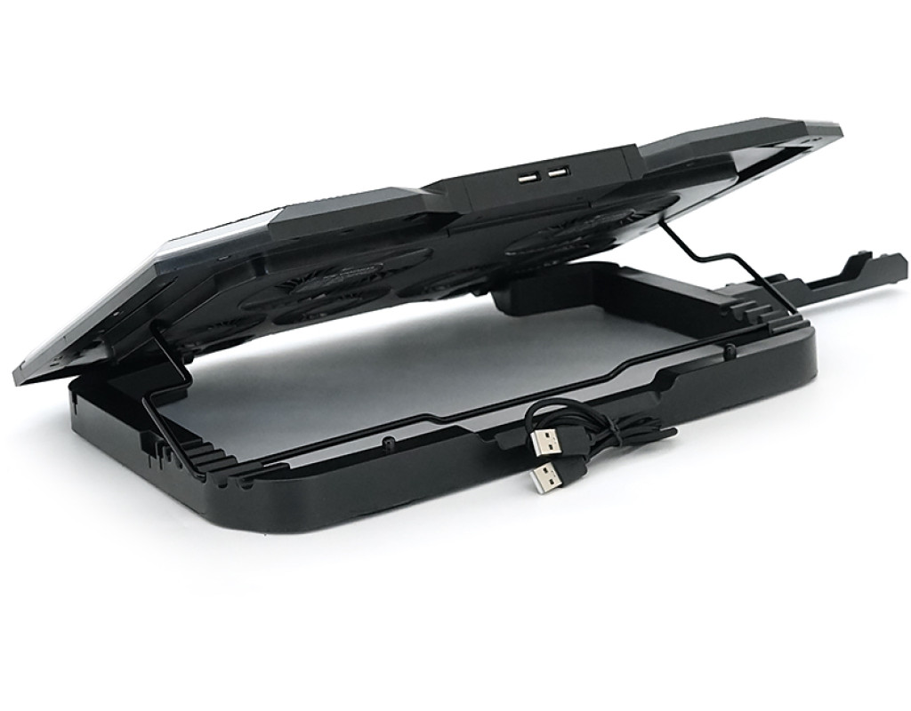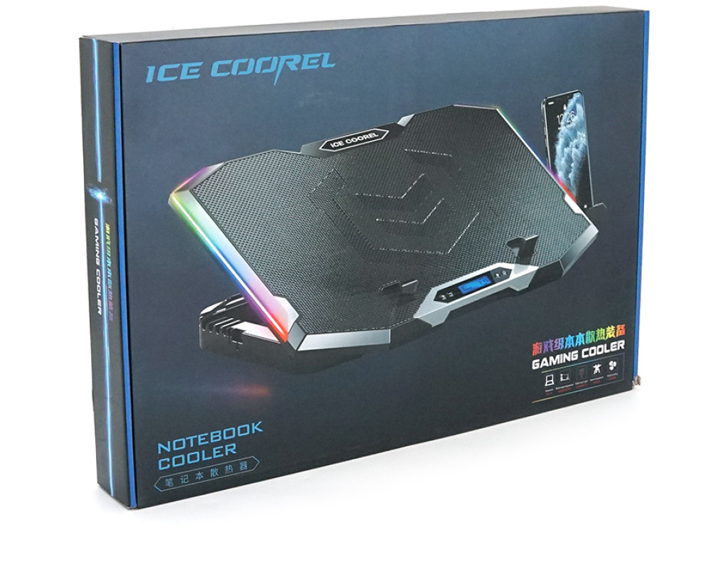 Підставка для ноутбука IceCoorel K9, 10-17", 2*100mm 1400±10% RPM + 4*70mm 2500±10%RPM, корпус пластик+алюміній, 2xUSB2.0 + підставка для мобільного телефону, 400x260x30mm, Blue, Box