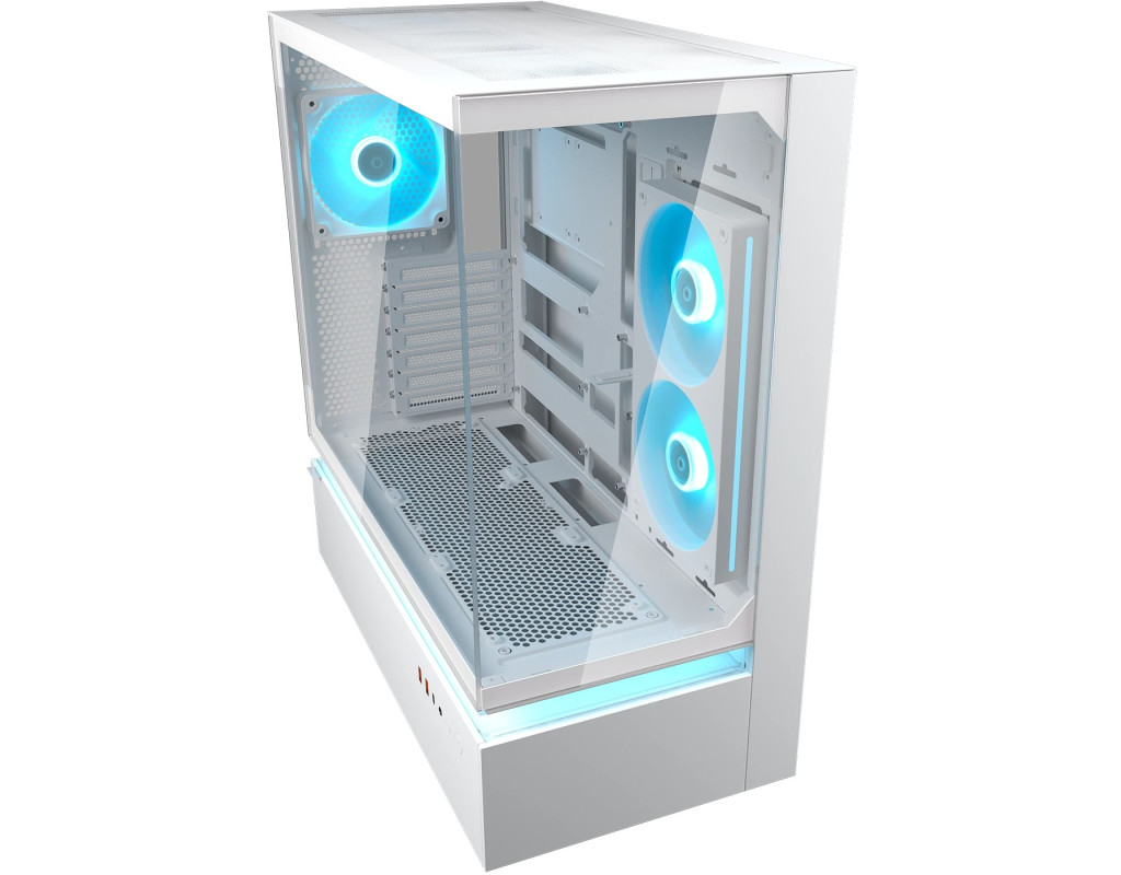 | CFV235 — це новий тип корпусу для ПК з інноваційною конструкцією центральної плаваючої вентиляції (CFV). Вона розділяє відсік блоку живлення і основний відсік, дозволяючи використовувати відкритий простір між ними для додаткового охолодження. CFV235 — це оптимальне поєднання панорамного огляду, компактності та покращеної архітектури охолодження, що забезпечує чудову циркуляцію повітря.
