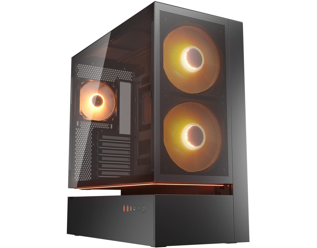 | CFV235 Mesh — це новий тип корпусу для ПК з інноваційною конструкцією центральної плаваючої вентиляції (CFV). Вона розділяє відсік блоку живлення і основний відсік, використовуючи відкритий простір між ними для охолодження за рахунок додаткової вентиляції, зберігаючи компактність без шкоди для поліпшеного охолодження. У поєднанні з модулем передньої панелі “3-в-1”, що об’єднує сітку, два 160-мм вентилятори ARGB PWM і пиловий фільтр в єдиному попередньо зібраному блоці, CFV235 Mesh забезпечує повітряний потік, що виходить за рамки стандартних обсягів.