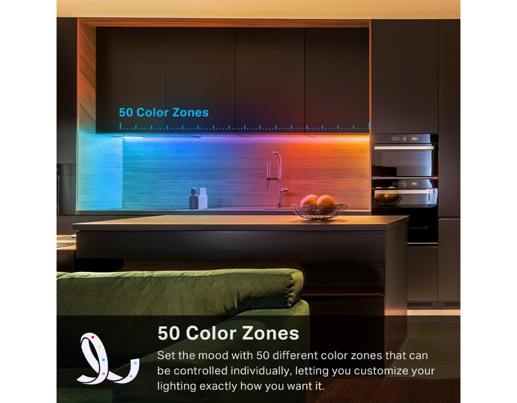 Адресна — встановлюйте свій колір для кожного із 50 відрізків стрічки. Білі світлодіоди — дозволять використовувати стрічку для звичайного освітлення. Світлові ефекти — створять веселу атмосферу у будинку. Світломузика — стрічка буде реагувати на звуки та блиматиме в такт музиці. Підтримка Apple HomeKit — керуйте стрічкою через Siri. Голосове управління — працює з голосовими помічниками, такими як асистент Google. Поліуретанова оболонка — продовжить термін служби стрічки, захистить її від вологи і додасть їй додаткового лиску. Працює без центру управління — достатньо підключити стрічку до мережі Wi-Fi. Просте налаштування — приклейте стрічку, підключіть її до Wi-Fi мережі та виконайте налаштування через додаток. |
