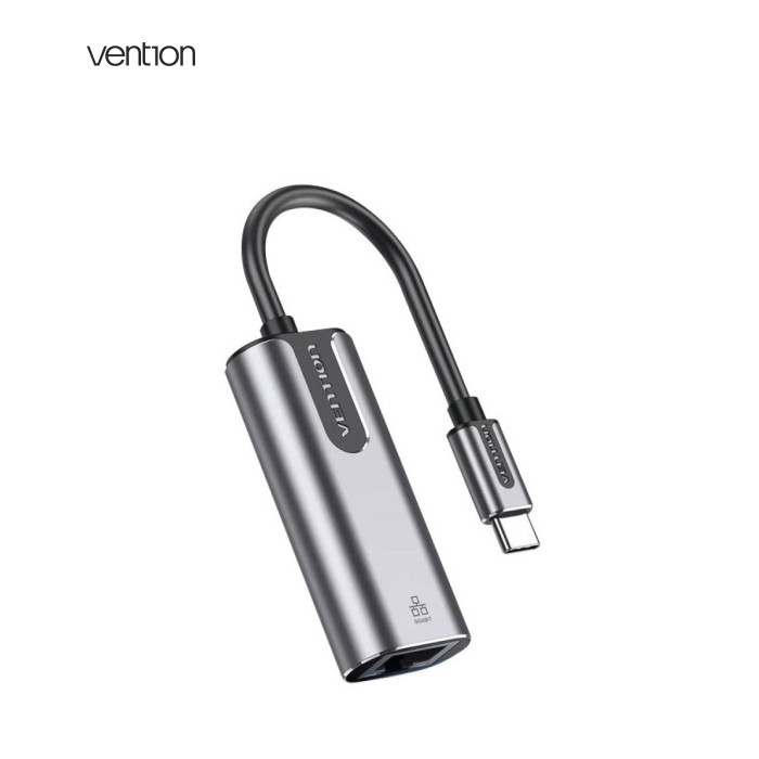 Перехідник USB-C to RJ45 Ethernet 1000Mbps Aluminum black Vention (CFNHB)