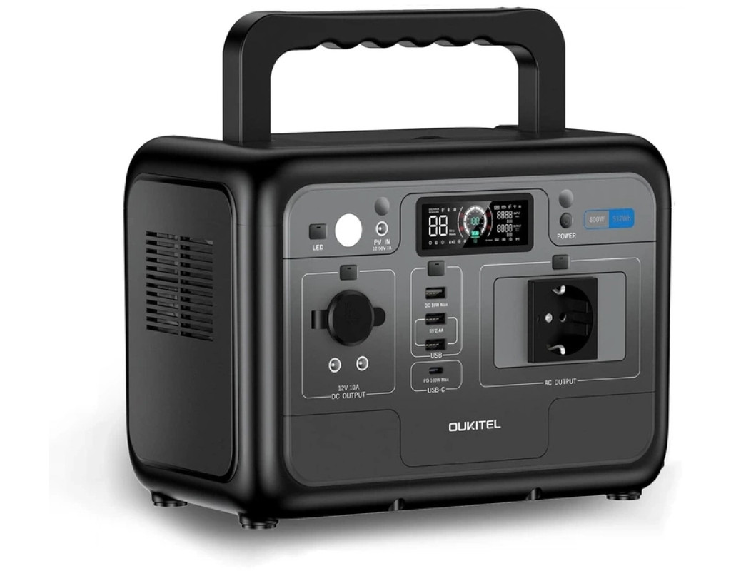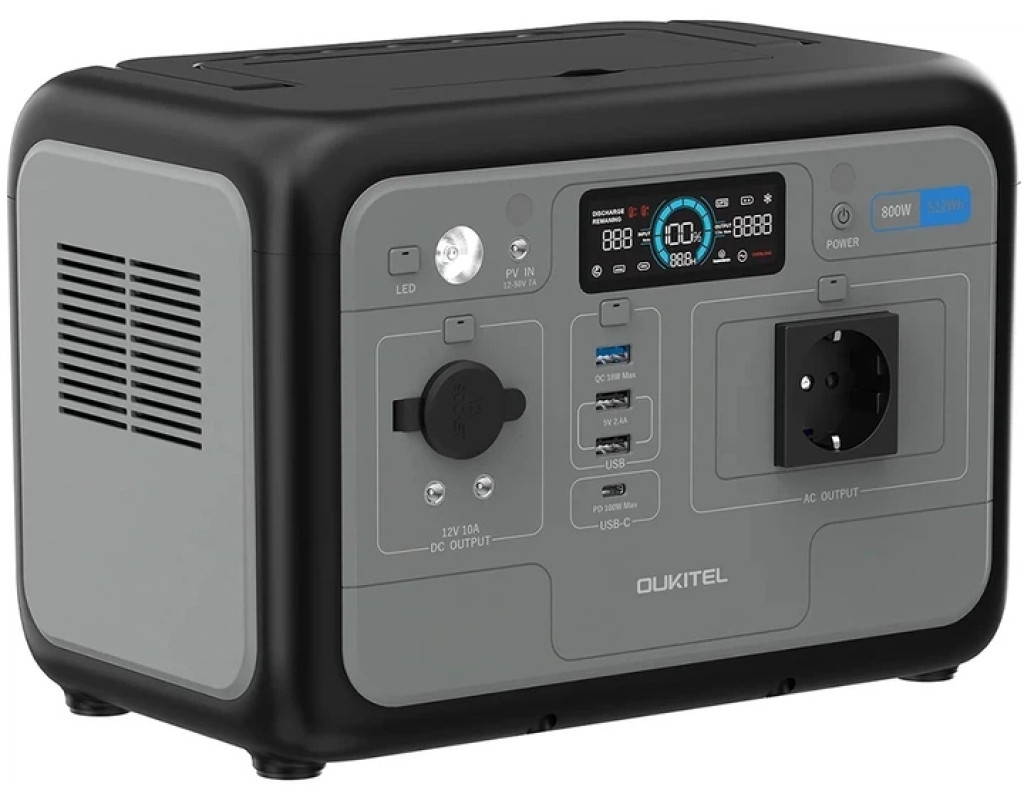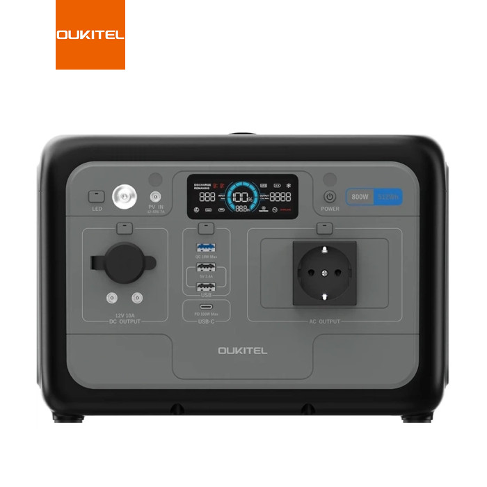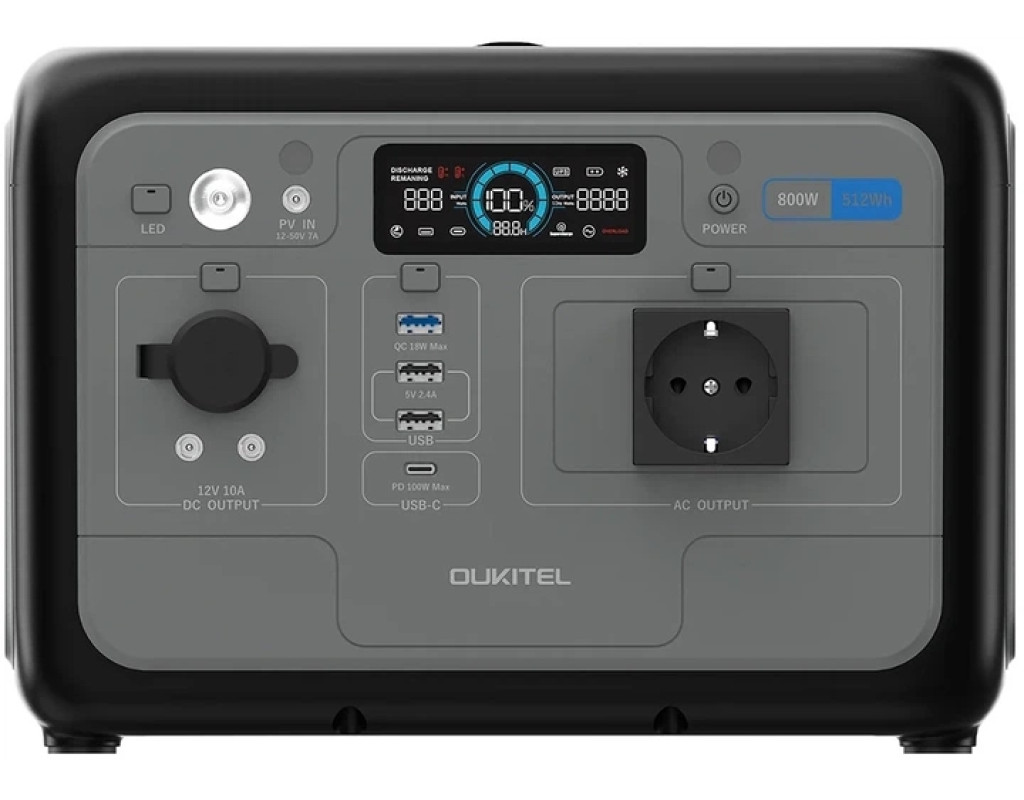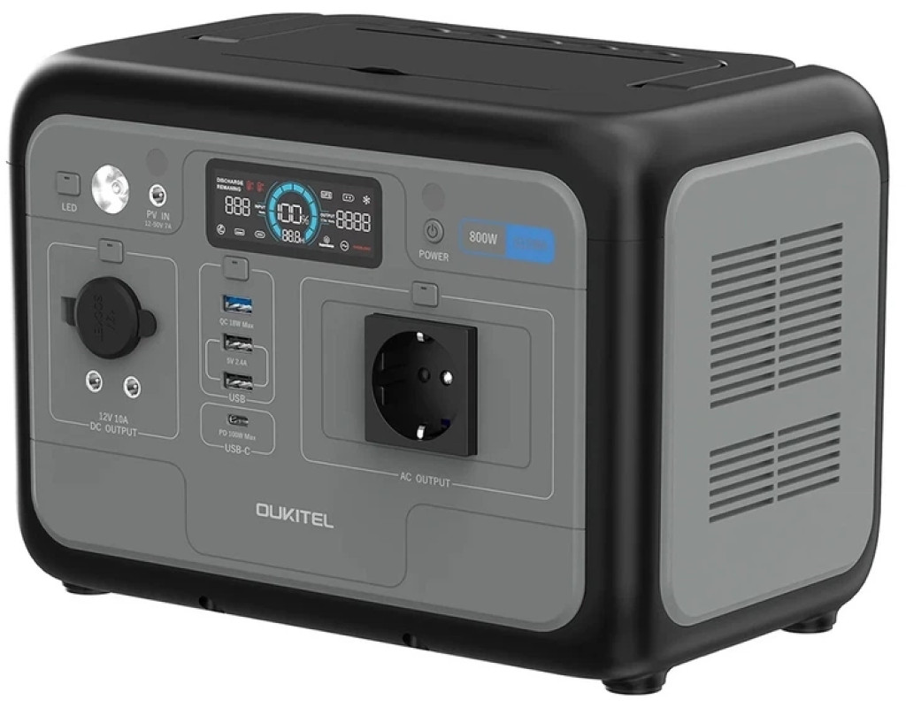 Зарядная станция Oukitel P800E 800 W 512 Wh Grey – потужна портативна зарядна станція ємністю 512 Вт·год і сумарною потужністю 800 Вт Надійне рішення для живлення побутових приладів під час відключення електроенергії Оснащена розеткою змінного струму, DC-виходами, гніздом прикурювача та портами USB-C / USB-A, що забезпечує широкі можливості підключення різних пристроїв Основні переваги