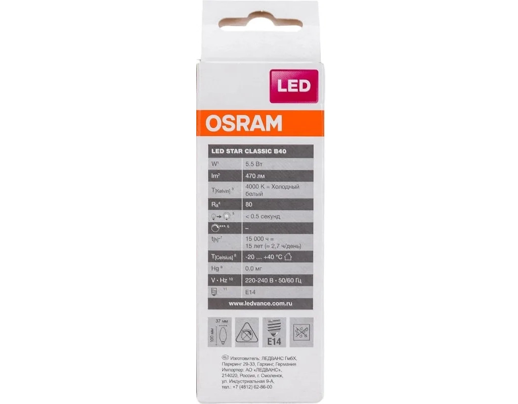 Лампочка Osram LS CL B40 5,5W/840 FR 230V E14 (4058075056886)