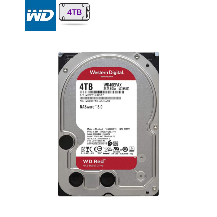 4 TB, 5400 об/хв, 256 MB, SATA III, 3.5", WD RED, 180 МБ/с, 4.8 Вт, 27 дБ