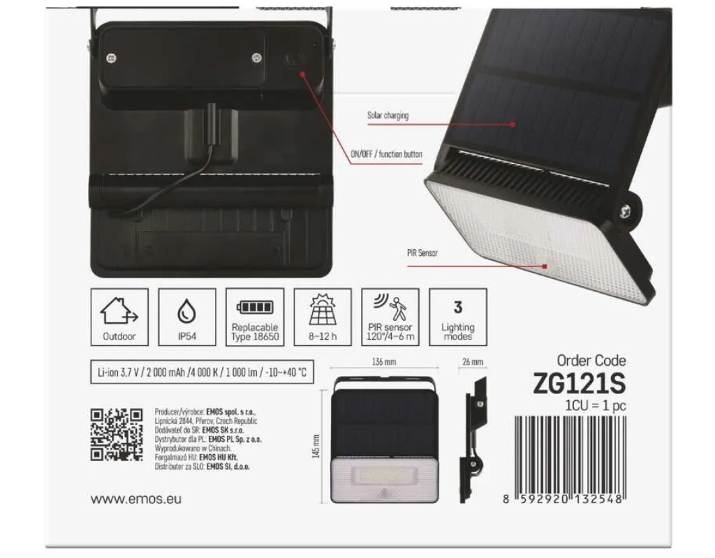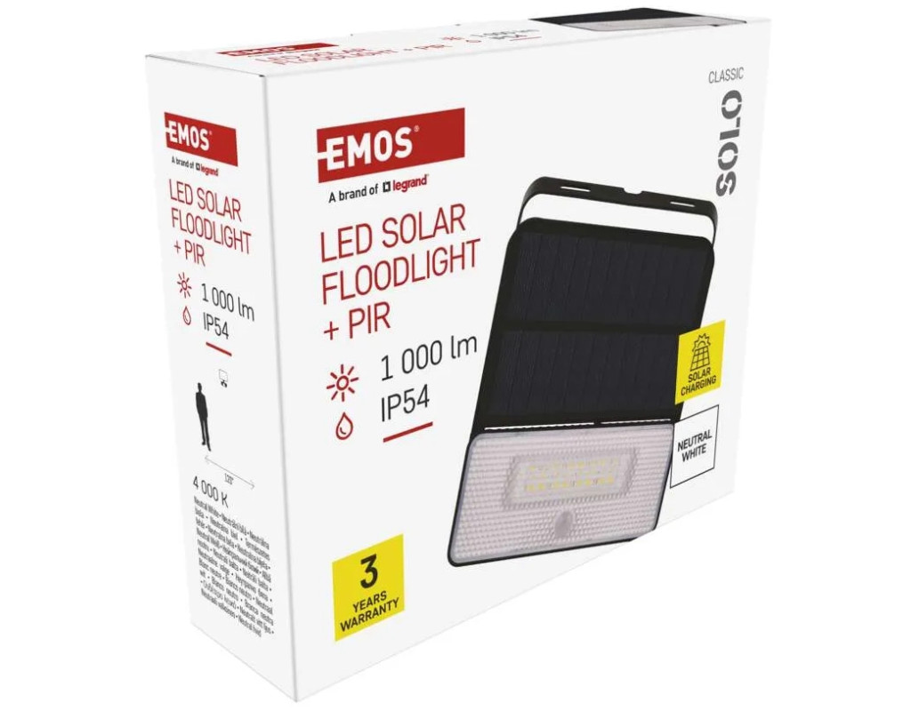 Прожектор EMOS сонячний світлодіодний 1000 лм IP54 4000K PIR (ZG121S)