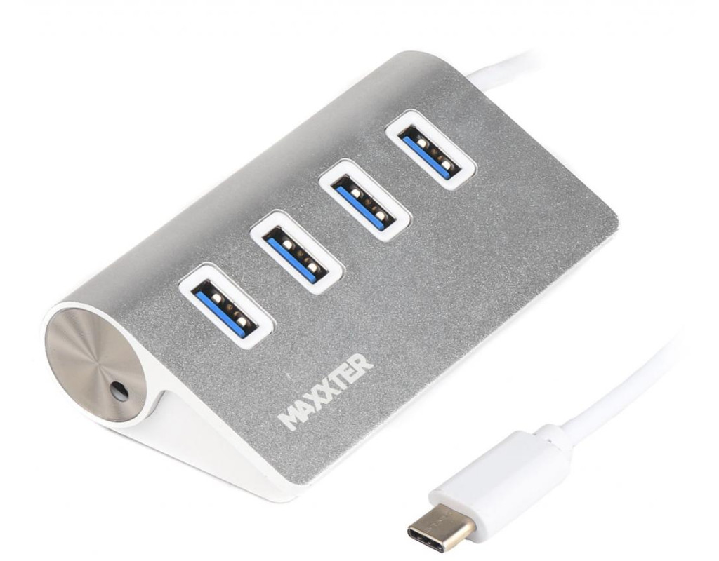 Концентратор Maxxter USB 3.0 Type-C 4 ports silver (HU3С-4P-01)