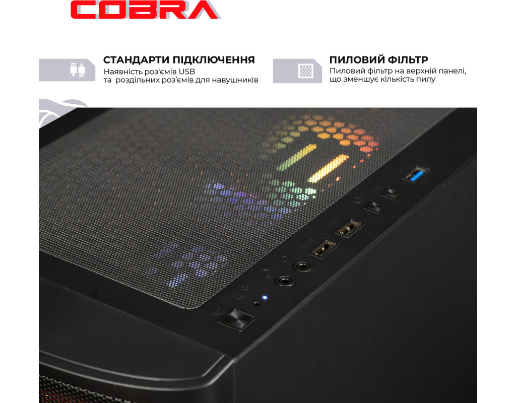Професійна збірка комп`ютера COBRA забезпечить оптимальний повітряний потік всередині корпусу, а значить і відмінне охолодження всіх компонентів ПК.