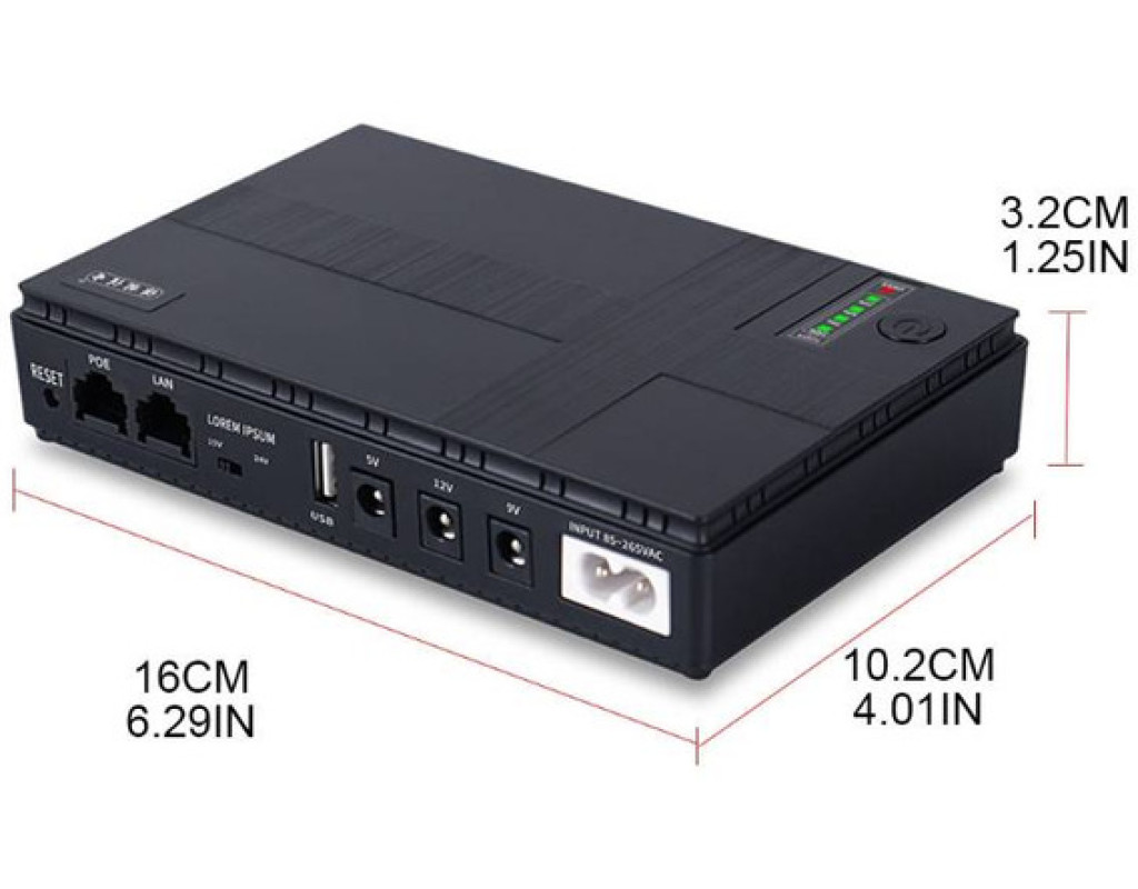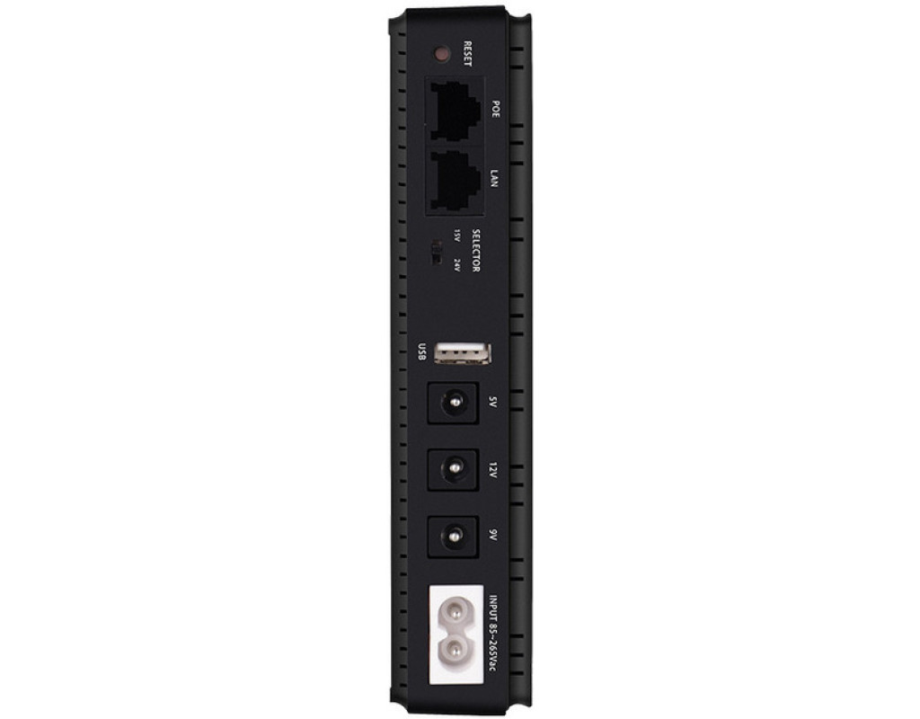 ДБЖ DC1018P забезпечує резервним електроживленням пристрої з вхідною напругою 5В/9В/12В в умовах знеструмлення або нестабільної роботи електромережі. Підтримує одночасне живлення до трьох пристроїв, наприклад: ONU-термінал, WiFi роутер, смартфон/планшет, камери відео нагляду та інші… DC1018P має на борту наступні роз’єми: DC 9В, DC 12В, USB Type-A 5В, POE 15V/24V (з пермикачем) та вхідний роз’єм 85-265В для під’єднання пристрою до електромережі. Акумуляторна батарея міні ДБЖ – це чотири вбудованих Li-ion акумуляторів типу 18650 ємністю 2600 мА*г (загальна ємність 10400 мА*г або 38 Вт*г). Застосування літієвих акумуляторів забезпечує невелику вагу та швидку зарядку. ДБЖ DC1018P здатне забезпечити безперебійну роботу під’єднаних до нього приладів за умови відсутності електрики тривалістю від 6 до 24 годин (у залежності від загальної потужності цих пристріїв), а час повної зарядки акумуляторів ДБЖ становить близько 2 годин. Принцип роботи DC1018P наступний: через вхідний роз’єм ДБЖ під’єднується до електромережі, інші прилади підключаються до вихідних роз’ємів, відповідно до їх робочої напруги. Якщо на вході пристрою є електроживлення - ДБЖ автоматично заряджатиме свої батареї та живить зовнішні прилади. У разі зникнення електрики DC1018P миттєво переходить на свій акумулятор, підключений пристрій «не помітить» перемикання і зможе працювати надалі (до 10 годин) на заряді батареї до появи електрики. Джерело безперебійного живлення DC1018P дозволяє бути з інтернетом навіть коли в квартирі або будинку немає електроенергії. |