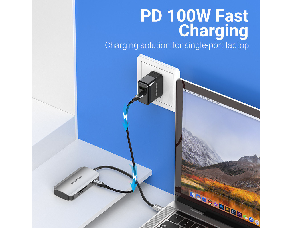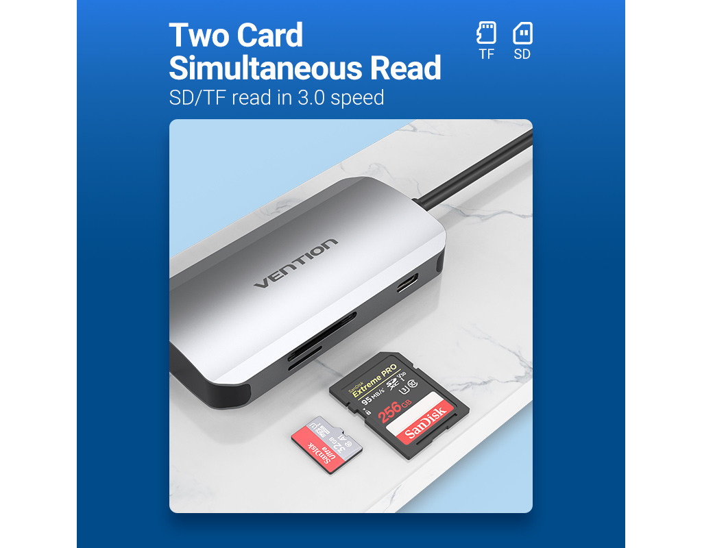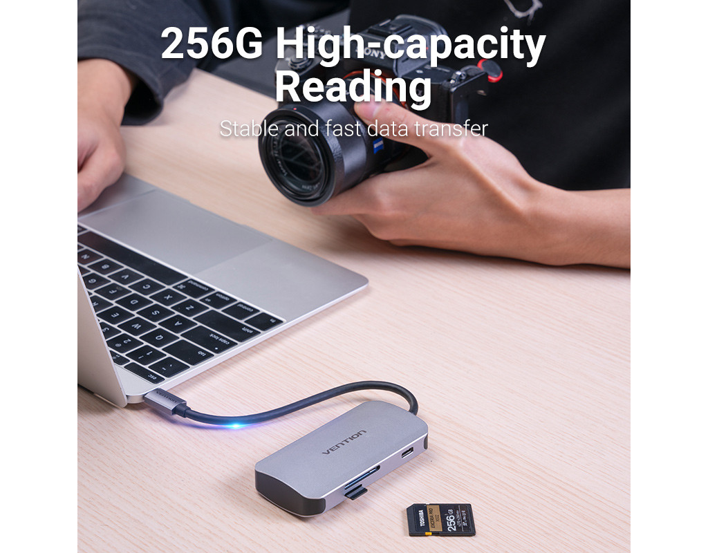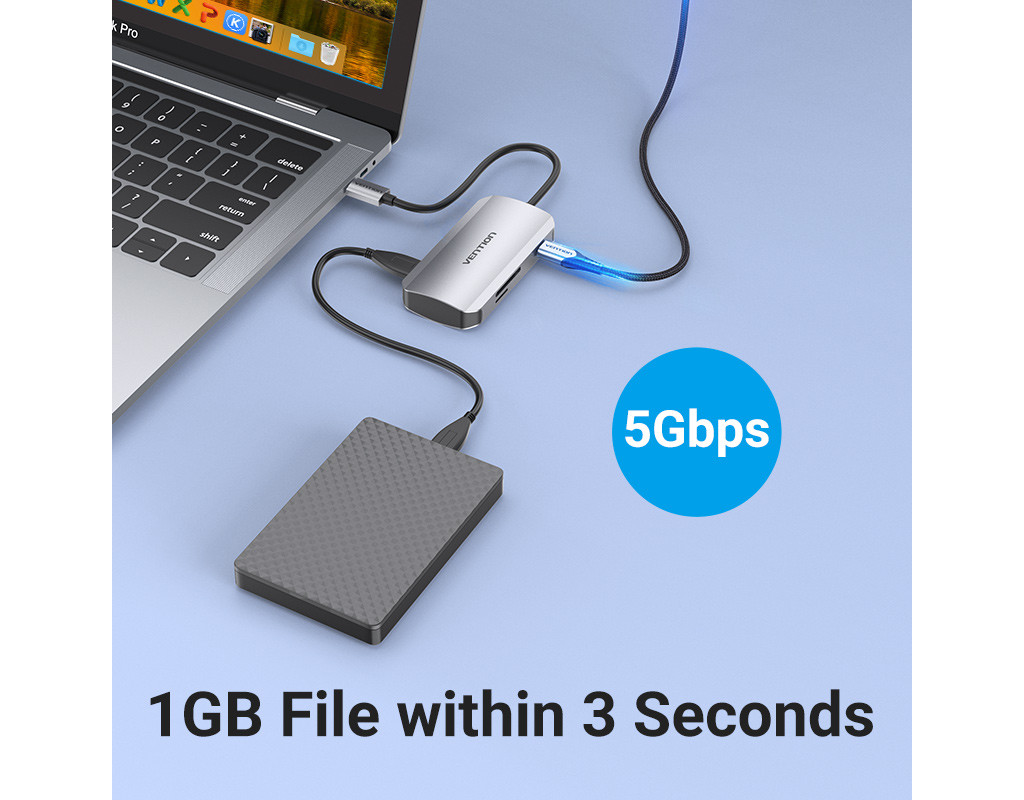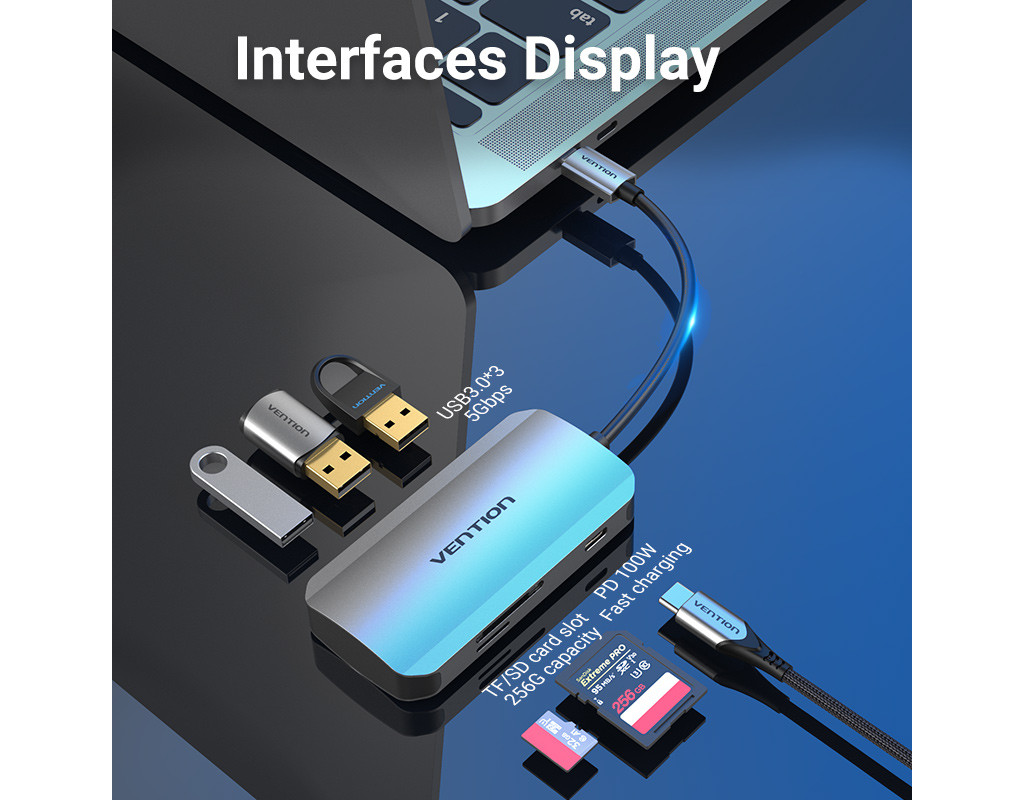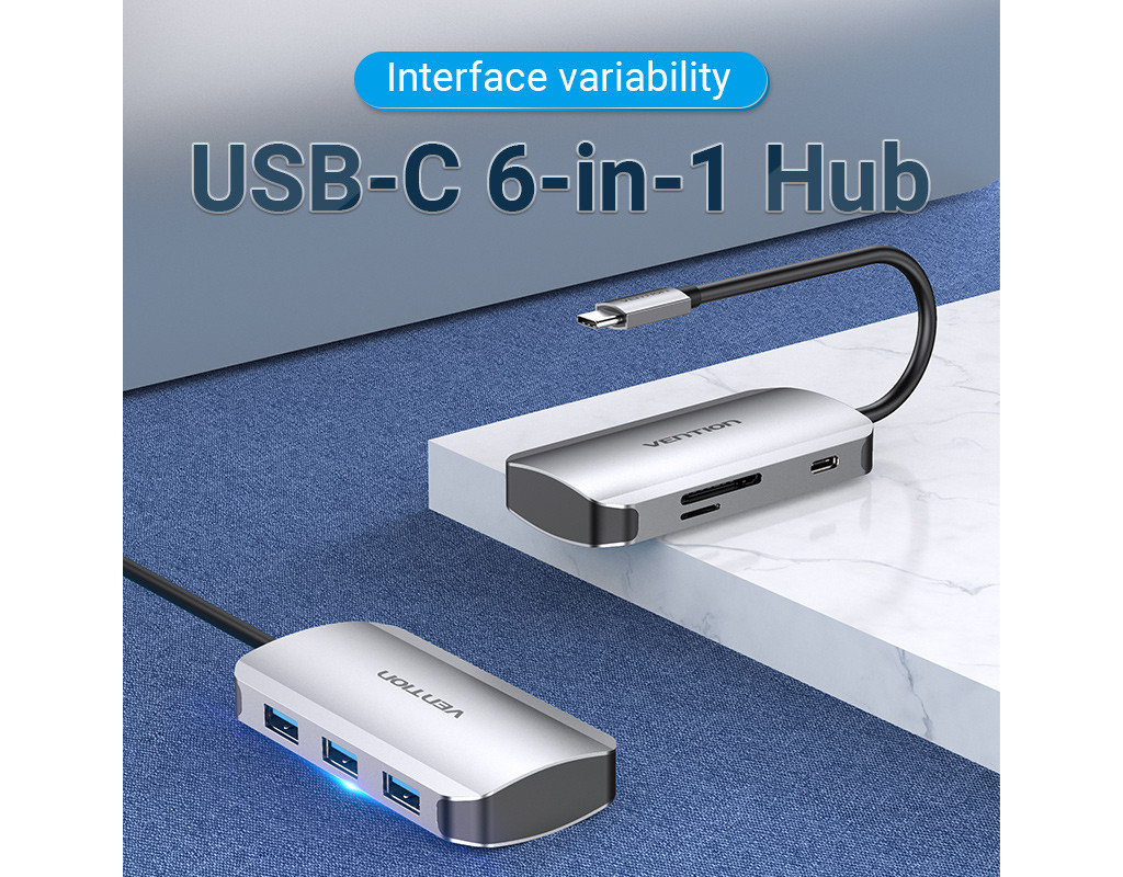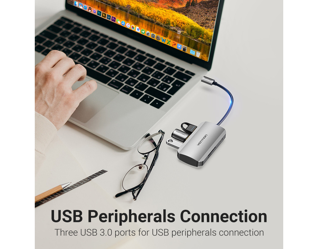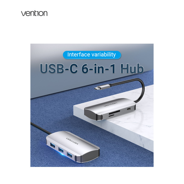 | Мультифункціональний хаб Vention з роз’ємом USB Type-C дає змогу збільшити кількість роз’ємів на вашому пристрої.