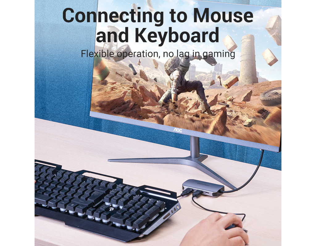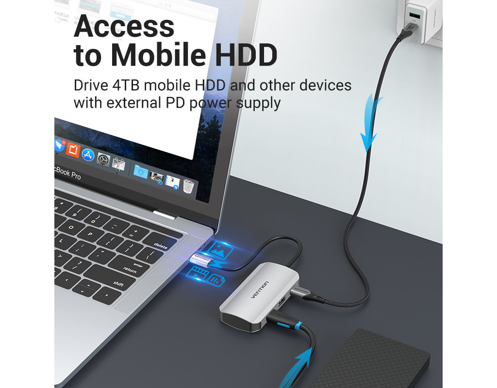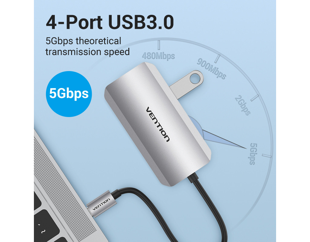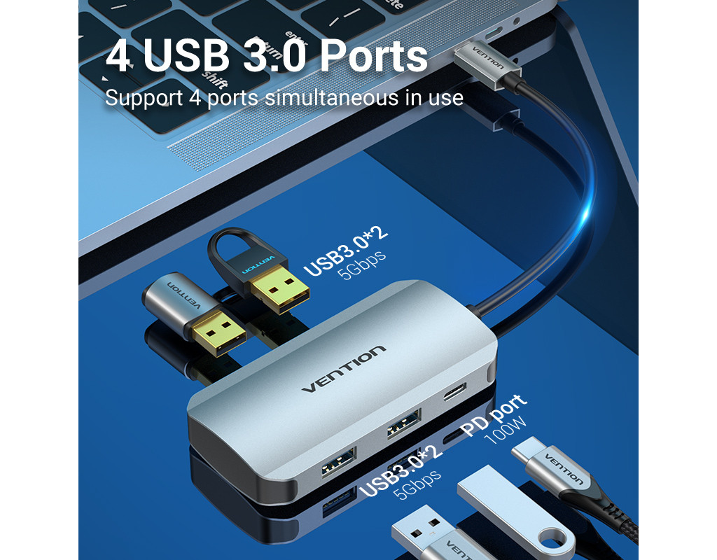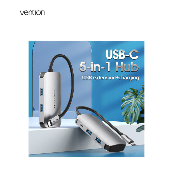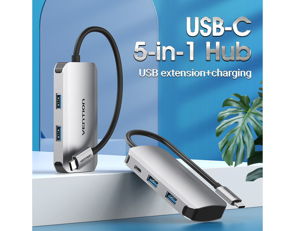 | Мультифункціональний хаб Vention з роз’ємом USB Type-C дає змогу збільшити кількість роз’ємів на вашому пристрої.