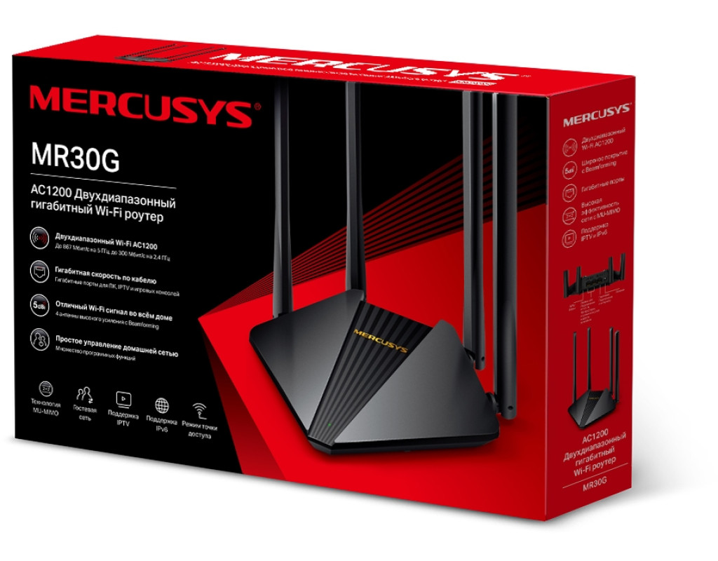 Широке покриття - завдяки чотирьом антен з високим коефіцієнтом посилення і функції Beamforming стабільне Wi-Fi підключення буде у всьому будинку Гігабітні порти - в повній мірі скористайтеся інтернет-підключенням і передавайте дані на великій швидкості Висока ефективність мережі - технологія MU-MIMO дозволяє MR30G взаємодіяти відразу з декількома пристроями, що збільшує загальну пропускну здатність мережі Просте управління домашньої мережею - різноманітні функції, такі як батьківський контроль, пріоритизація (QoS) і гостьова мережа для підвищення безпеки та ефективності Підтримка IPTV - підтримка IGMP Proxy / Snooping, режиму "Міст" і тегування VLAN для оптимізації потоків IPTV Підтримка IPv6 - дозволяє користуватися сервісами IPv6 провайдера і відвідувати сайти IPv6 |