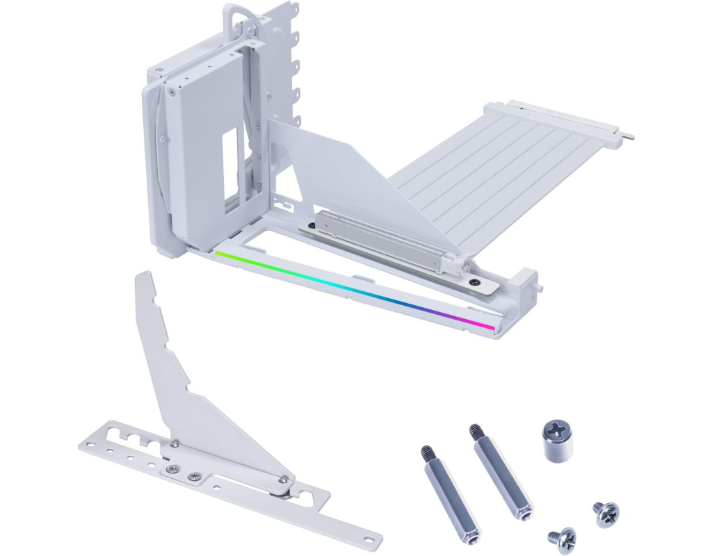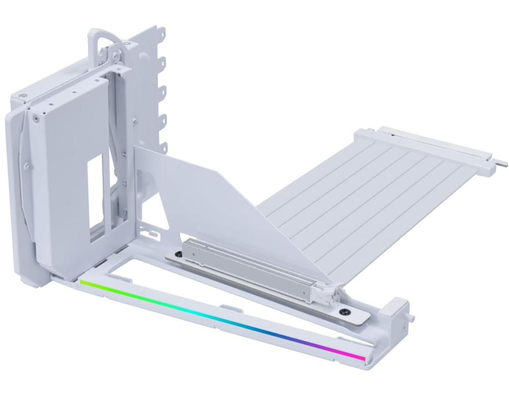 | Три регулювання висоти для оптимального простору: остання версія кронштейна V4 має більший виріз для введення/виведення графічного процесора, що значно зменшує перешкоди від кабелів HDMI та DisplayPort. Ця продумана конструкція дозволяє нахиляти графічний процесор вперед для кращого охолодження або назад, щоб підкреслити його естетичну привабливість.