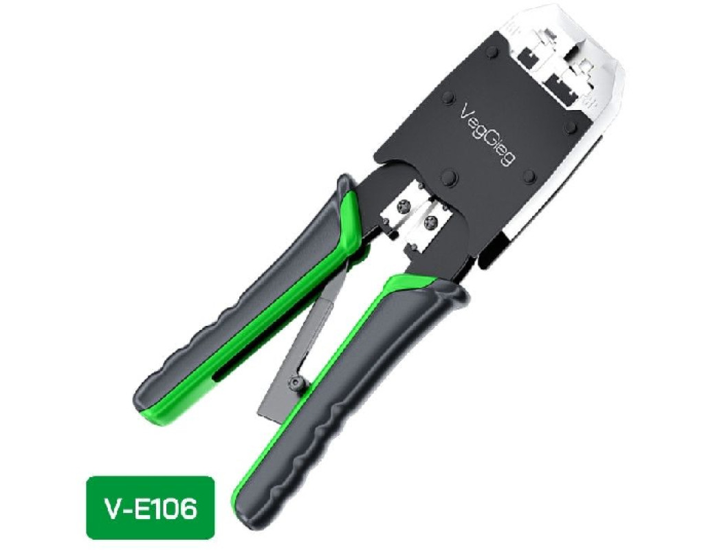 Інструмент VegGieg V-E113 для обтискання RJ-45 (8P8C) та RJ-12 / 11 (6P6C) 4P4C, Чорно / Зелені Q10