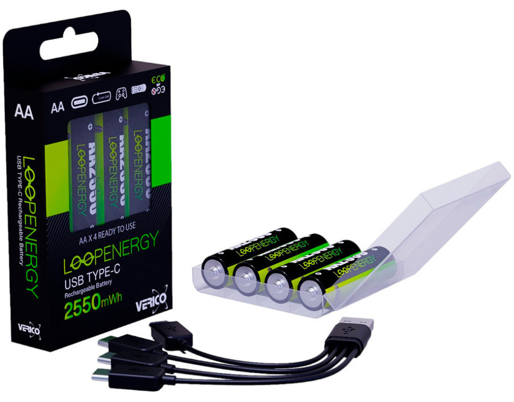 Акумуляторні батареї формату "АА" та "ААА", що продають зараз на ринку України, заряджаються через зарядний пристрій, який сам по собі коштує велику суму грошей і його треба купувати окремо. У комплекті з кожним блістером Verico Loop Energy йде кабель для заряду на два або чотири акумулятори в залежності від моделі.