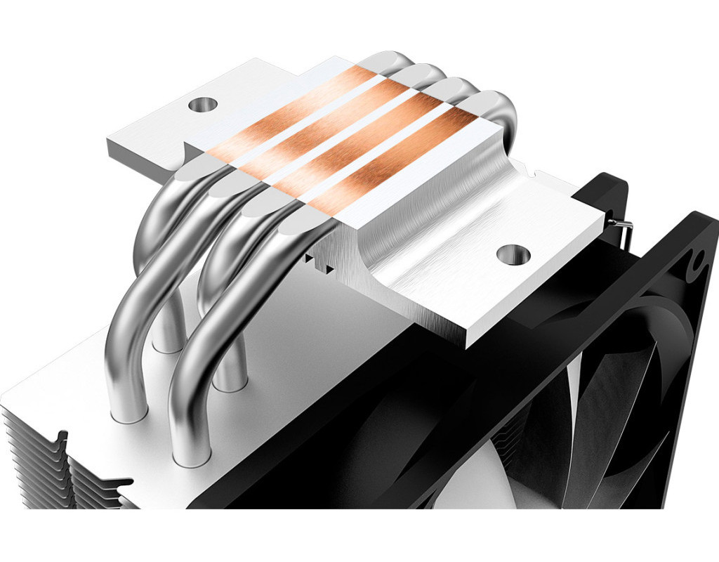 Для процесорів - INTEL, AMD, сокет - AM4, 1150, 1151, 1155, 1156, 1200, 1700, 1851, матеріал радіатора - алюміній, діаметр вентиляторів - 120 мм, Максимальна частота обертів - 1500 об/хв, Тип підшипників - гідродинамічний (FDB Bearing), рівень шуму - 26.8 dB, роз'єми живлення - 4-pin, Підсвічування - RGB, 4 теплові трубки