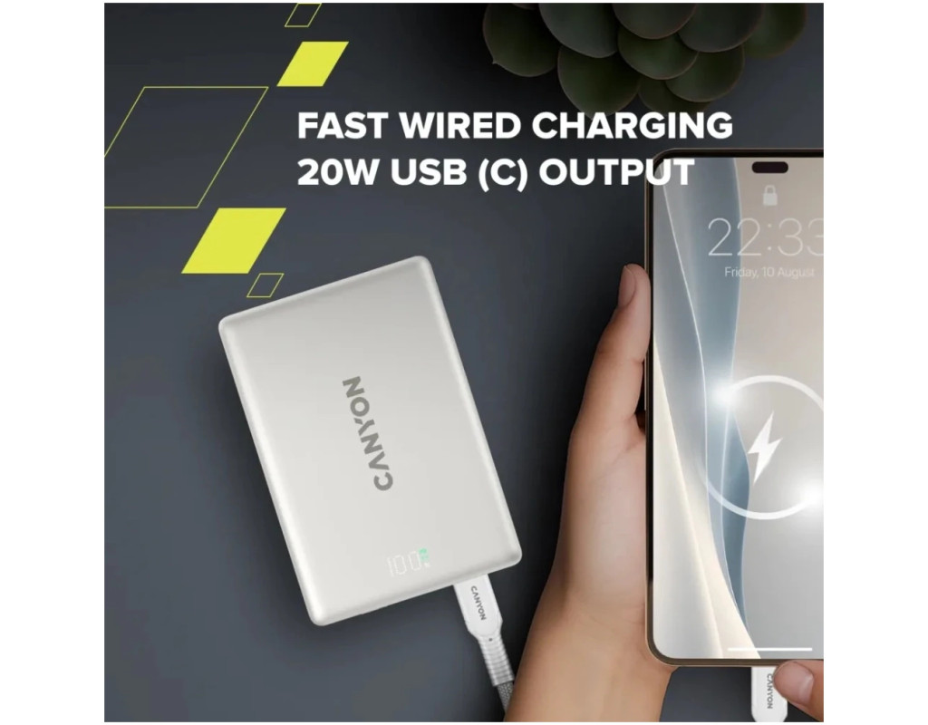 Powerbank Canyon 10000mAh OnPower 511: надійний супутник у світі технологій Зустрічайте інноваційний пристрій для зарядки - Powerbank CANYON 10000mAh OnPower 511 у стильному кольорі Aluminium Star Grey. Цей потужний та компактний пристрій стане незамінним помічником для тих, хто цінує мобільність та надійність. З ємністю 10000 мАг, цей powerbank забезпечує тривалу роботу ваших гаджетів. Тип акумулятора Li-Pol гарантує стабільну та безпечну зарядку, що є важливим фактором для сучасних користувачів. Завдяки вхідному роз'єму USB Type-C, пристрій підтримує сучасні стандарти підключення, що робить його універсальним для різних гаджетів. Технологічні можливості та безпека Powerbank CANYON OnPower 511 оснащений вихідними роз'ємами USB Type-C, які забезпечують швидку передачу енергії. Пристрій підтримує одночасну зарядку двох гаджетів, що особливо зручно в умовах активного користування. Сила струму на виході становить 2.4 та 2.22 А, а напруга - від 5 до 9 В, що дозволяє заряджати широкий спектр пристроїв. Функції заряджання включають MagSafe, Power Delivery (PD), Qi бездротову зарядку та швидку зарядку, що дозволяє заряджати сучасні смартфони та інші гаджети з максимальною ефективністю. Індикація на дисплеї забезпечує зручний контроль рівня заряду. Захист від перегріву, перезарядки та короткого замикання гарантує безпечну експлуатацію. Дизайн та функціональність Завдяки металевому корпусу, Powerbank CANYON OnPower 511 не тільки виглядає елегантно, але й забезпечує високу міцність. Розміри 103 х 69.5 x 14,5 мм та вага 190 г роблять його зручним для перенесення, що особливо важливо для активних користувачів. Максимальна вихідна потужність 20 Вт дозволяє швидко заряджати навіть найвимогливіші пристрої. Цей powerbank ідеально підходить для зарядки смартфонів, пропонуючи сучасні технології та стильний дизайн. З гарантією на 24 місяці, ви можете бути впевнені у надійності цього пристрою. Оберіть Powerbank CANYON 10000mAh OnPower 511 - і ви отримаєте надійного помічника для вашого мобільного життя. |