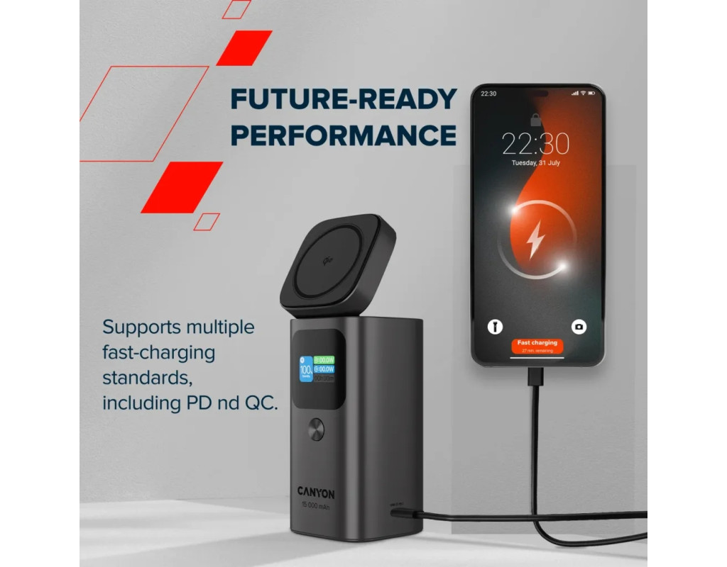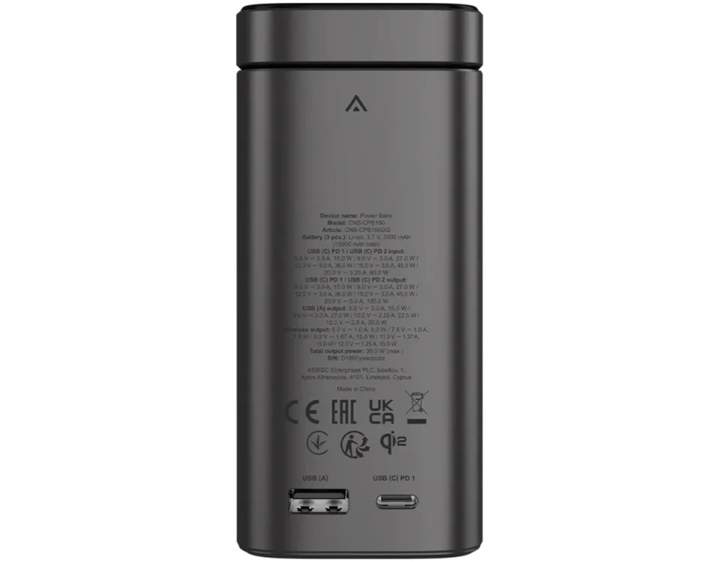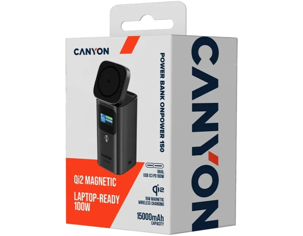 OnPower 150 – це втілення портативної енергії, рішення, створене для тих, хто покладається на потужність та адаптивність для виконання своїх завдань. Завдяки літій-полімерному акумулятору високої ємності 15.000 мАг та вдосконаленому інтелектуальному чіпсету, він забезпечує швидку та стабільну зарядку ноутбуків, телефонів та планшетів, і може робити це кілька разів без перерви. Два порти живлення Type-C потужністю 100 Вт дозволяють повербанку заряджати два ноутбуки або пристрої з високим споживанням енергії одночасно. Це правильний варіант, якщо ви хочете залишатися продуктивними будь-де, куди вас заведе робота. Вбудована магнітна бездротова зарядка Qi2 зручна для мобільних користувачів, а підтримка традиційного USB-A та кількох напруг ідеально підходить для навушників, камер та іншої повсякденної електроніки. OnPower 150 адаптується до потреб кожного пристрою завдяки інтелектуальному розподілу живлення, забезпечуючи ефективну зарядку та захищаючи від перегріву та перевантажень. Його темно-сірий корпус приховує гнучкі функції безпеки, що робить цей пристрій однаково зручним для використання в сумці, на столі або в конференц-залі. Для користувачів, яким потрібна надійність під час заряджання, OnPower 150 перевершує всі очікування щодо можливостей портативного зарядного пристрою. Основні характеристики: