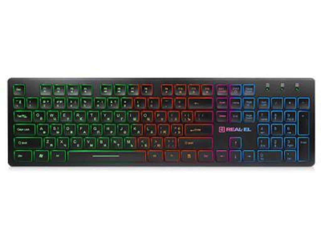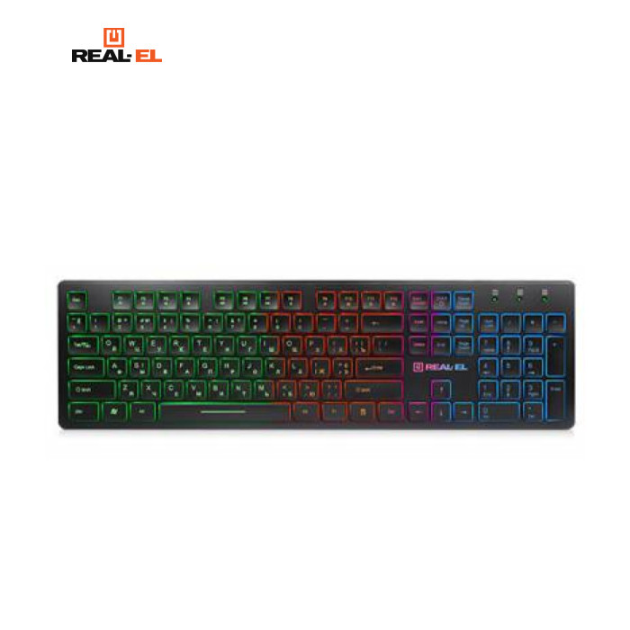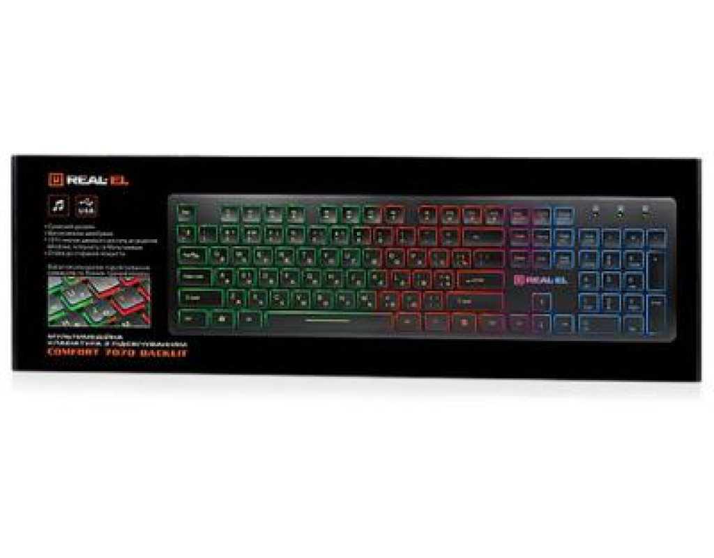 Особливістю мультимедійної клавіатури з підсвічуванням REAL-EL Comfort 7070 Backlit є сучасний дизайн, багатобарвне підсвічування символів і бічних граней клавіш, високоякісна мембрана, 12 Fn кнопок швидкого доступу до Windows, Інтернету і Мультимедіа, стійке до стирання покриття. Дуже стильна