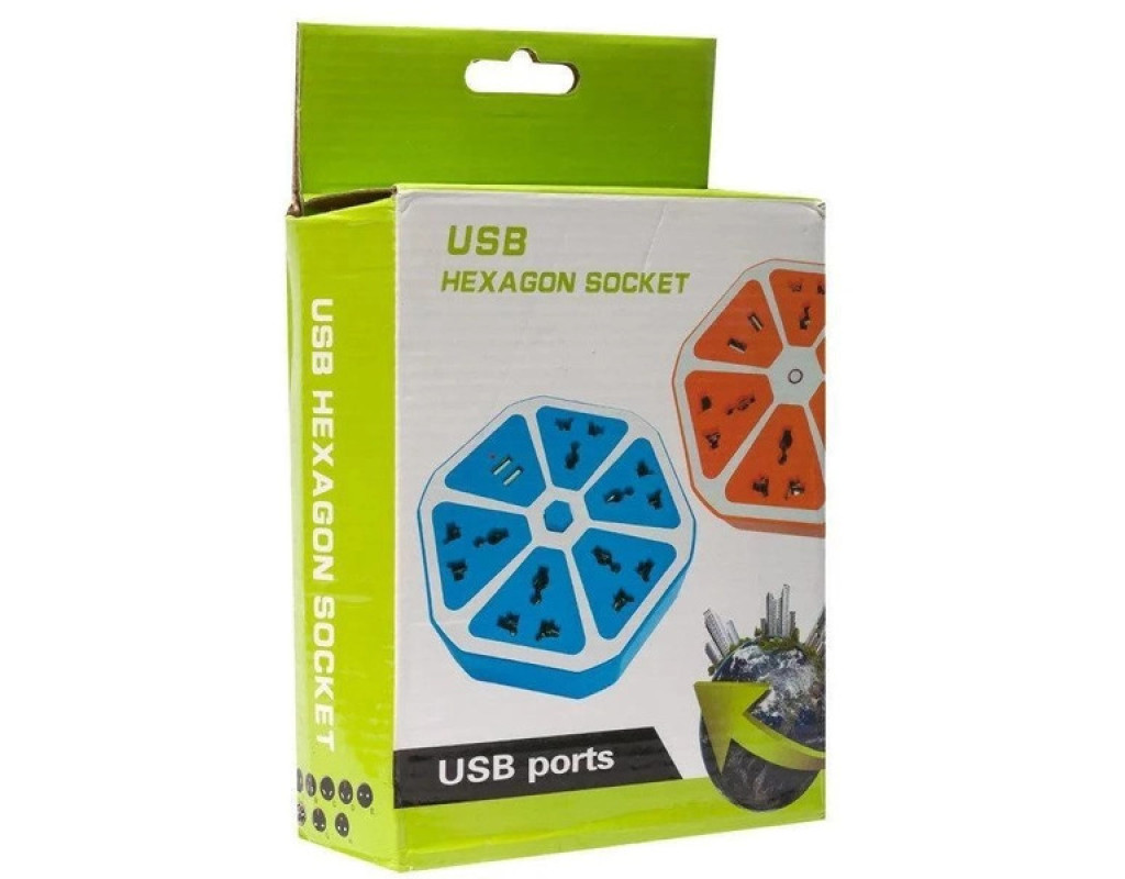 | Фільтр мережевий HEXAGON 1,7м, 4 універсальні розетки + 2x USB, violet, BOX (10481_Y) |