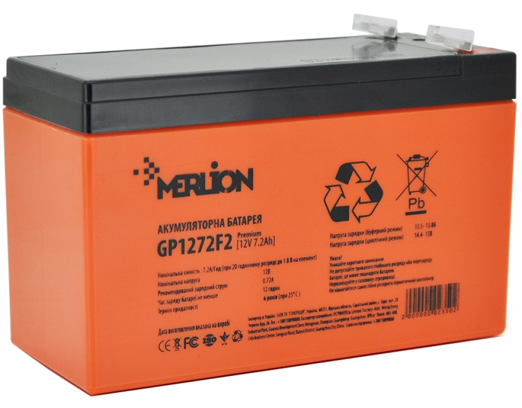 | Батарея до ДБЖ Merlion 12V-7.2Ah PREMIUM (GP1272F2PREMIUM) є ідеальним рішенням для забезпечення безпечного та надійного живлення ваших пристроїв в умовах відсутності напруги в мережі. Цей акумулятор із напругою 12 В та ємністю 7,2 Аг підходить для використання в системах безперебійного живлення, а також в охоронних сигналізаціях, забезпечуючи стабільність та безперервність роботи. Свинцево-кислотна батарея оснащена клемами F2, що гарантує легкий монтаж та надійне з'єднання. Завдяки своїм характеристикам, акумулятор має низький рівень саморозряду і не вимагає складного обслуговування, що робить його ідеальним вибором для тривалого і безперебійного використання. Електроліт у гелеподібному стані забезпечує високу стійкість до зовнішніх впливів, включаючи нахили та перевороти. < b >Розміри батареї становлять 151 x 94 x 64 мм, а вага — 2,1 кг, що дозволяє легко встановити її в стандартні відсіки ДБЖ. Вона може працювати при температурі від -15 до +50 °C, хоча для оптимального терміну служби варто зберігати і експлуатувати її в теплих умовах. Корпус, виготовлений з негорючого пластику, додає рівень надійності та безпеки у використанні. Обираючи батарею Merlion 12V-7.2Ah PREMIUM, ви інвестуєте у високу якість та безпеку вашої системи. |