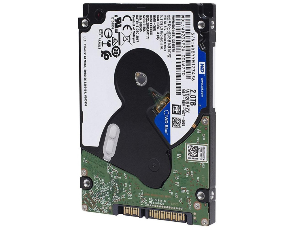 2 TB, 5400 об/хв, 128 MB, SATA III, 2.5", WD Blue, 149 МБ/с, 1.7 Вт, до 24 дБ