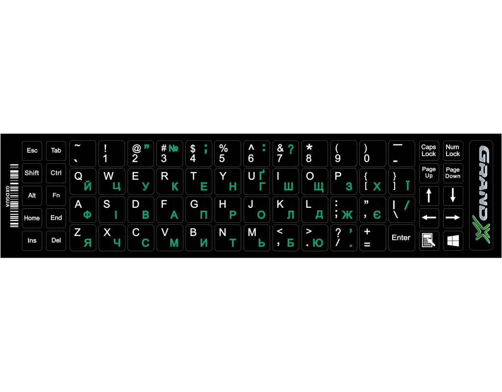 | Наклейка на клавіатуру Grand-X 68 keys UA green, Latin white (GXDGUA)Ви привезли ноутбук з-за кордону, купили клавіатуру без кириличної розкладки або у Вас просто стерлися літери на кнопках? Хтось змінює клавіатуру цілком, хтось замовляє лазерне гравіювання.Але саме практичне і просте рішення - це купити наклейки на клавіатуру. Наклейки на клавіатуру - це найпростіший і фінансово щадний спосіб відновити істершіеся від інтенсивного використання позначення букв, цифр і символів практично на будь-якому комп'ютерному пристрої. Самоклеючі літери можуть знадобитися при необхідності русифікації пристрої введення, коли мова йде про фірмову техніку закордонних виробників, розрахованої виключно на внутрішніх користувачів. Наклейки на клавіатуру Grand-X 68 keys UA green, Latin white (GXDGUA):- Наклейки Grand-X виготовлені з м'якої ПВХ плівки товщиною 0,075 мм.- Поле-акриловий клей забезпечує міцне постійне прилипання.- Плівка не витирається і не втрачає колір.- Друк здійснена УФ (ультрафіолетовими) чорнилом- Перевагою УФ чорнила є стійкість до стирання і вигорання на сонці, екологічність і гнучкість. |