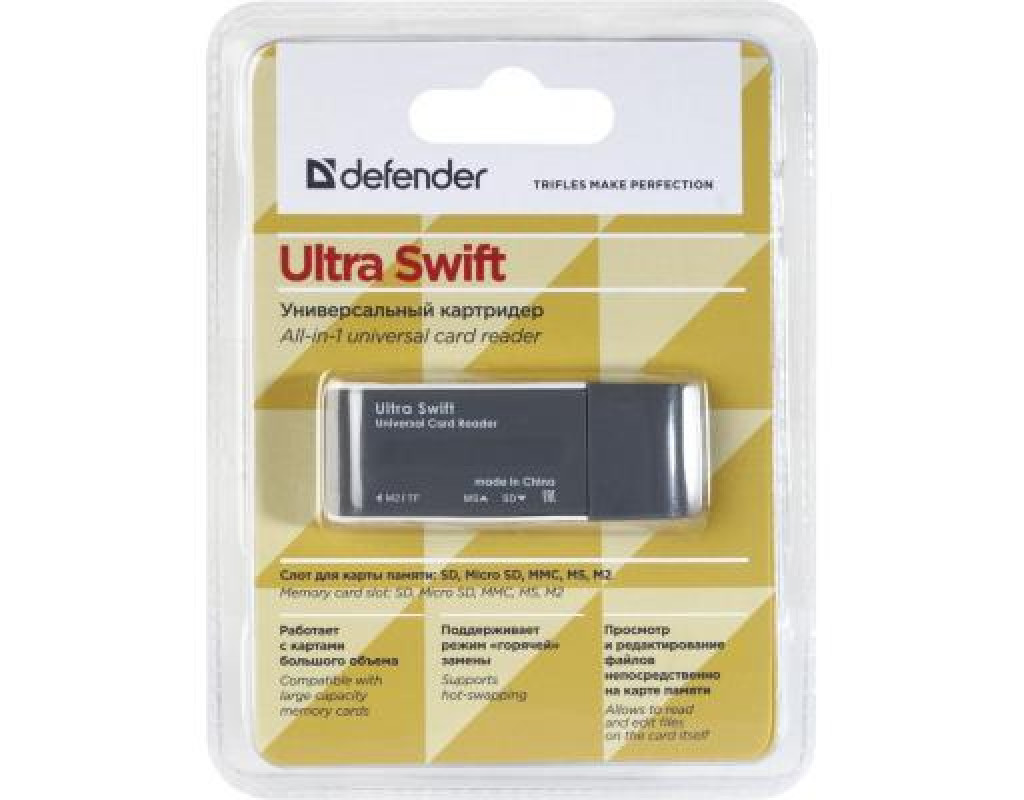 Зчитувач флеш-карт Defender Ultra Swift USB 2.0 (83260) Працює з картами великого об'єму. Високошвидкісна передача даних - Швидкість передачі даних від 1.5 Мбіт / с до 5 Гбіт / с, в залежності від класу карти пам'яті. Легка установка. Для роботи не потрібні драйвери. Можливість переглядати і редагувати файли безпосередньо на карті пам'яті. Підтримує режим «гарячої» заміни. Історія компанії Defender бере початок в 1990-му році з виробництва такої актуальної в той час продукції, як захисні екрани для моніторів. Саме з цієї причини компанія отримала свою назву, яке буквально означає «захисник». Сьогодні під цим брендом виробляється і реалізується безліч різноманітних пристроїв, що значно підвищують рівень комфорту при роботі за комп'ютером. Асортимент продукції компанії Defender складається з маніпуляторів, клавіатур, акустичних систем, навушників, витратних матеріалів, мережевих фільтрів, гарнітур, мікрофонів, засобів для чищення та безлічі інших товарів. Defender - це один з лідерів ринку комп'ютерних аксесуарів. Відмінною рисою продукції під даним брендом є її чудову якість при порівняно невеликій ціні. Компанія ретельно відстежує тенденції розвитку комп'ютерного ринку для того, щоб завжди пропонувати своїм клієнтам найсучасніші рішення. Продукція від Defender виготовляється на заводах, розташованих в Азії і Європі. Підприємство має дуже розвинену дилерську мережу, товари під торговою маркою Defender можна знайти в багатьох країнах і регіонах світу. |