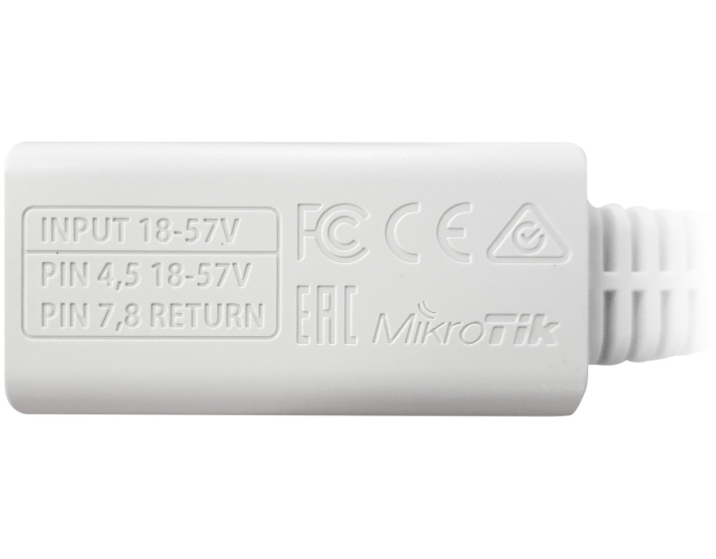 MikroTik RBGPOE – PoE інжектор для живлення по кручений парі і зв'язку з будь-яким пристроєм RouterBOARD, який підтримує технологію PoE з напругою 18-57V і працює зі швидкістю 1000 Mbps через гігабітний Ethernet порт. Досить підключити джерело живлення, а потім під'єднати мережевий кабель до пристрою RouterBOARD. Допомагає скоротити кількість кабелів. GPOE має екрановані роз'єми. |